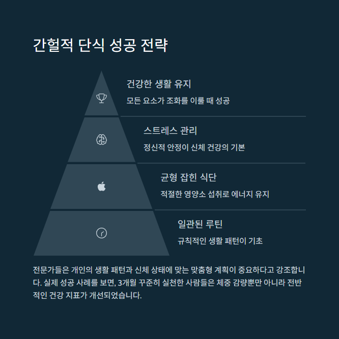 이제 실패 원인을 알았다면, 성공 전략도 같이 챙겨야겠죠? 간헐적 단식은 생각보다 훨씬 유연하고, 자신에게 맞게 조정할 수 있는 방식이에요. 아래 꿀팁들만 잘 적용해도 절반은 성공한 거예요!