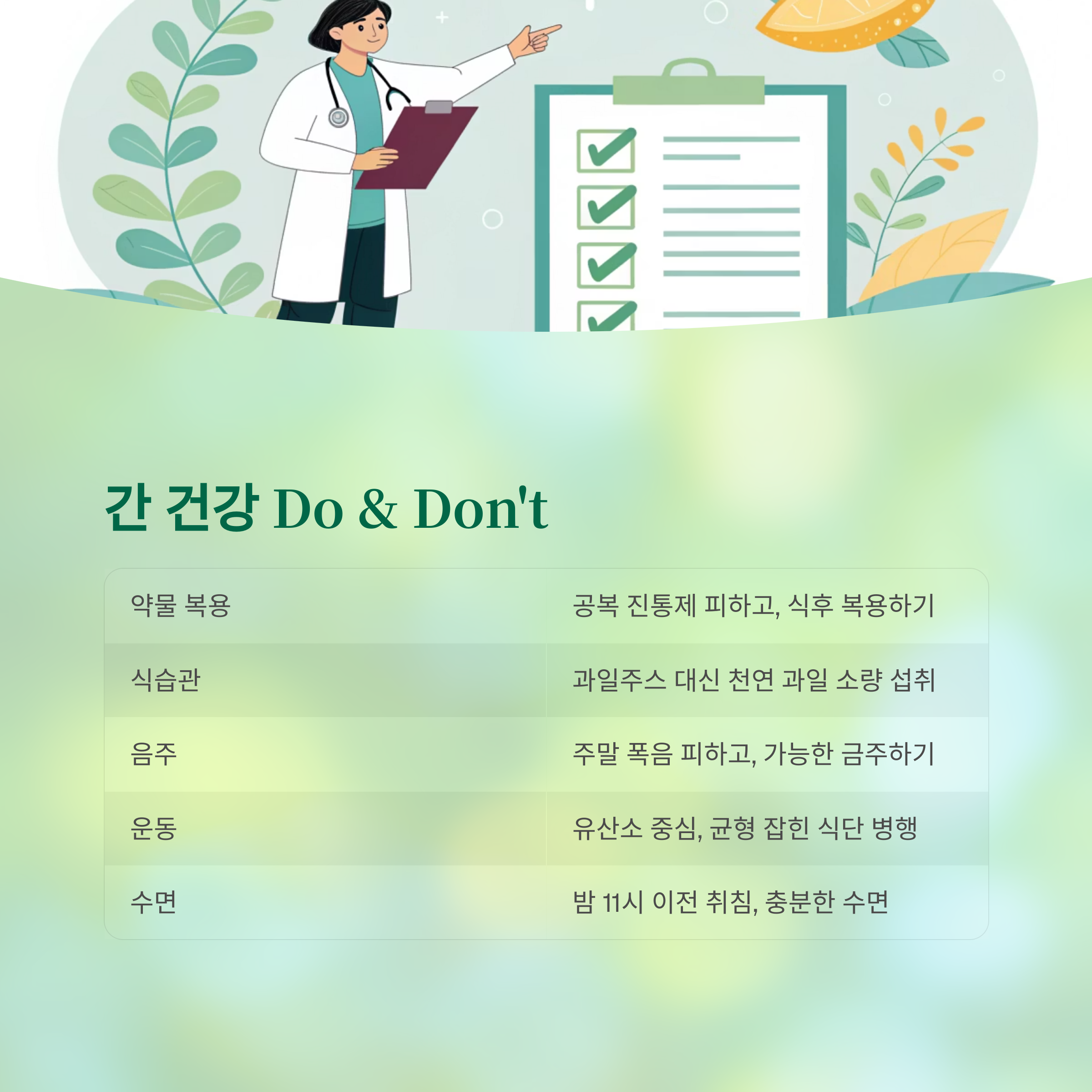 간 건강을 지키기 위한 Do & Don’t 요약표