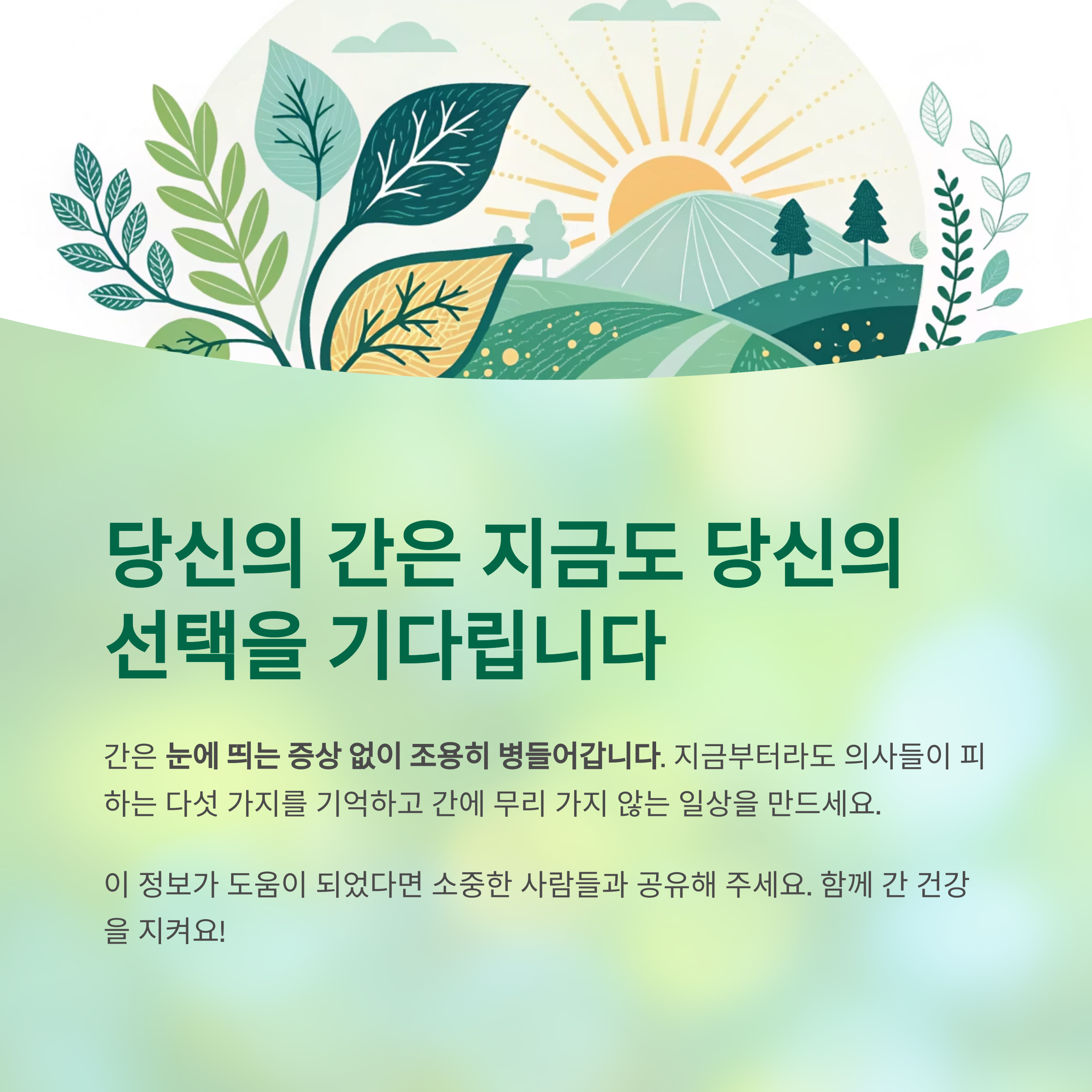 결론: 간은 조용히 병들고, 늦게 후회하게 만듭니다