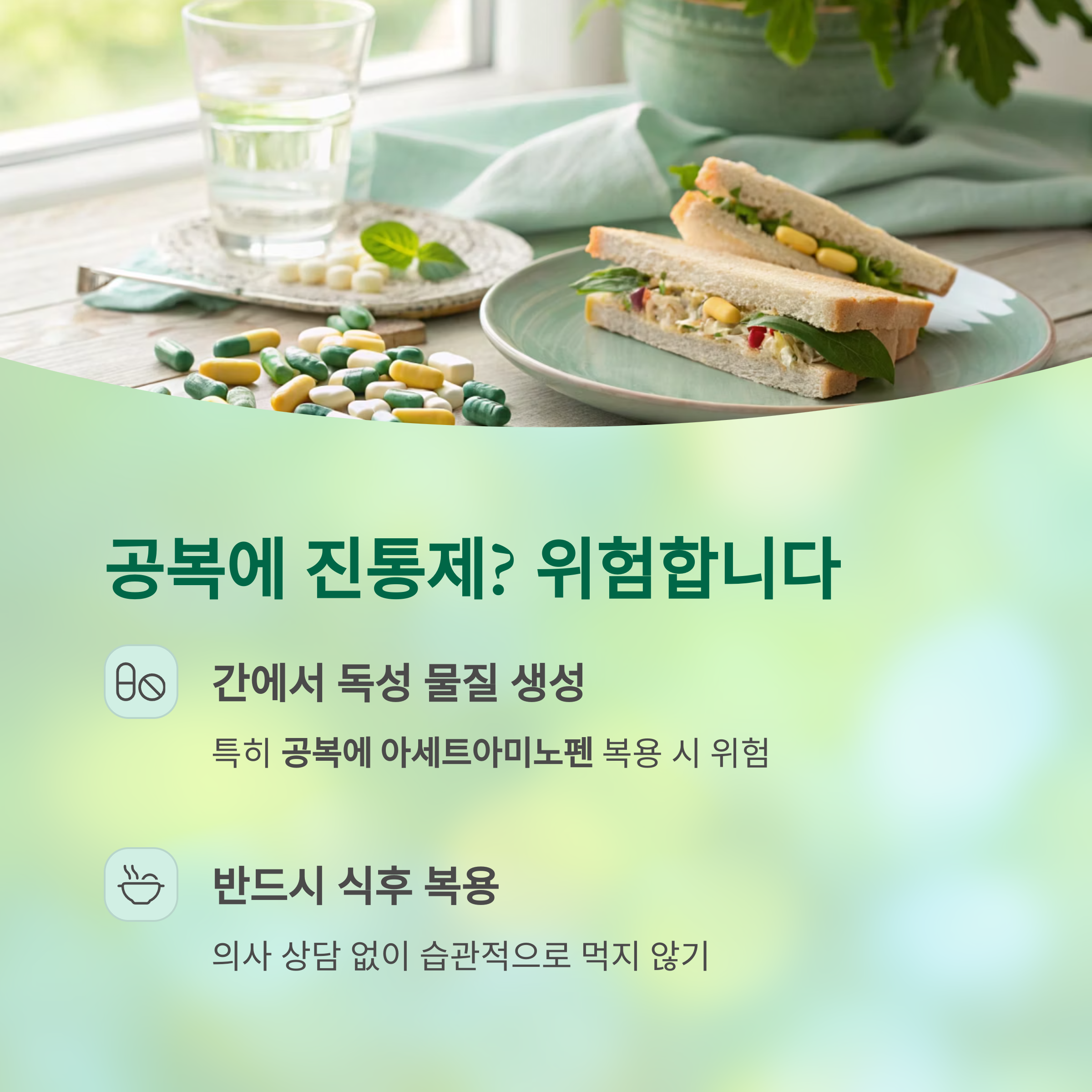 간 전문의는 진통제는 반드시 식후 복용하며,