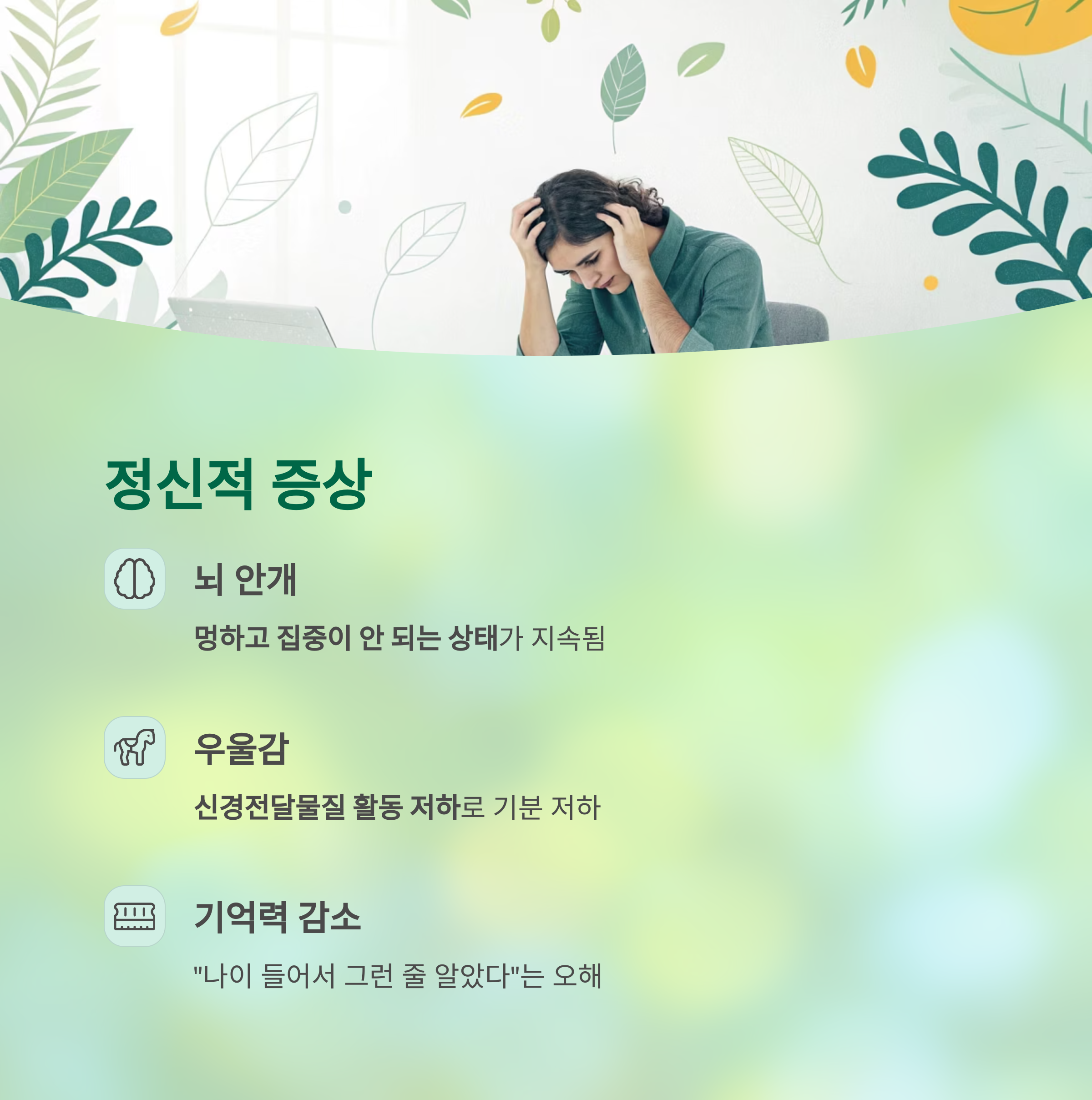 우울감, 집중력 저하, 멍한 상태가 지속됨