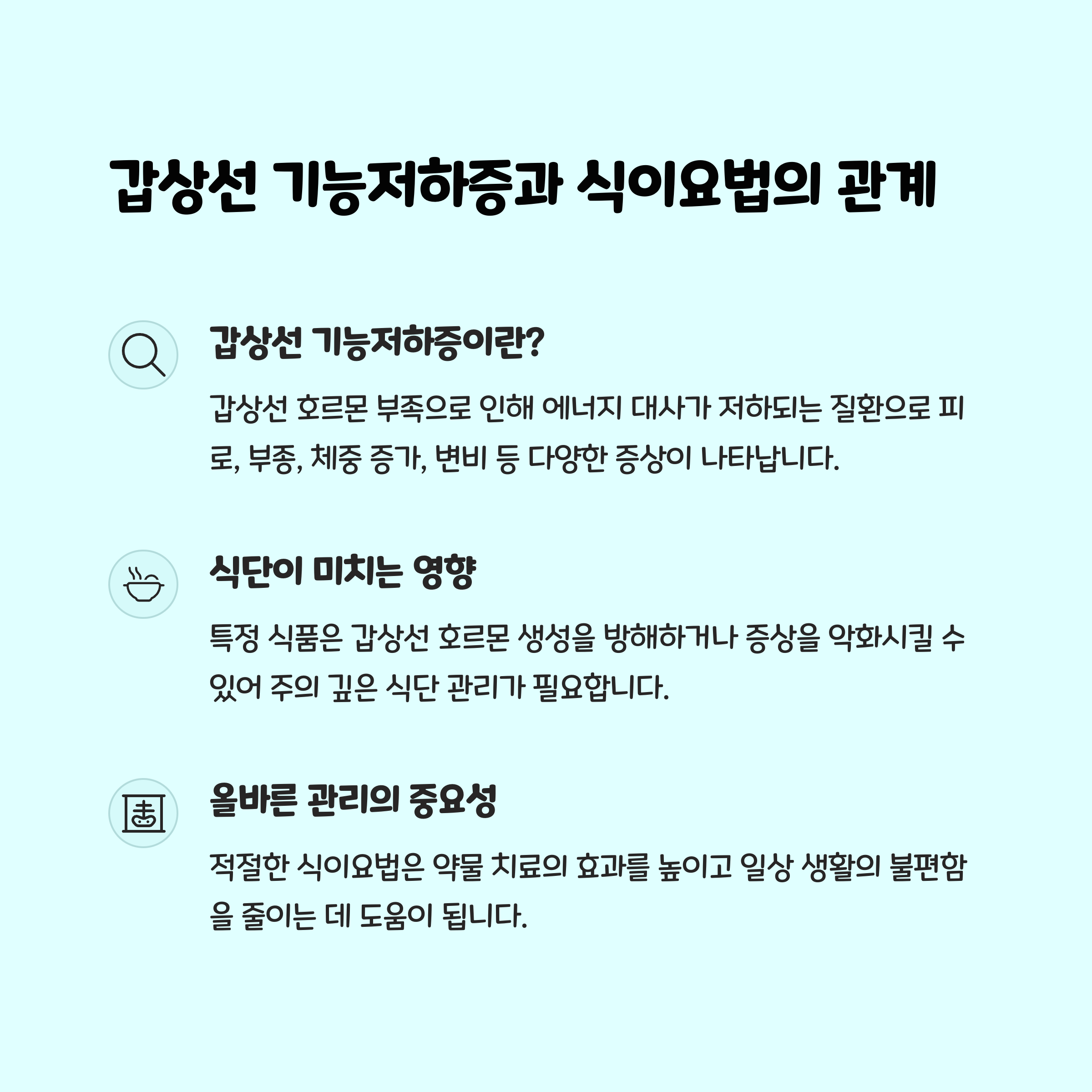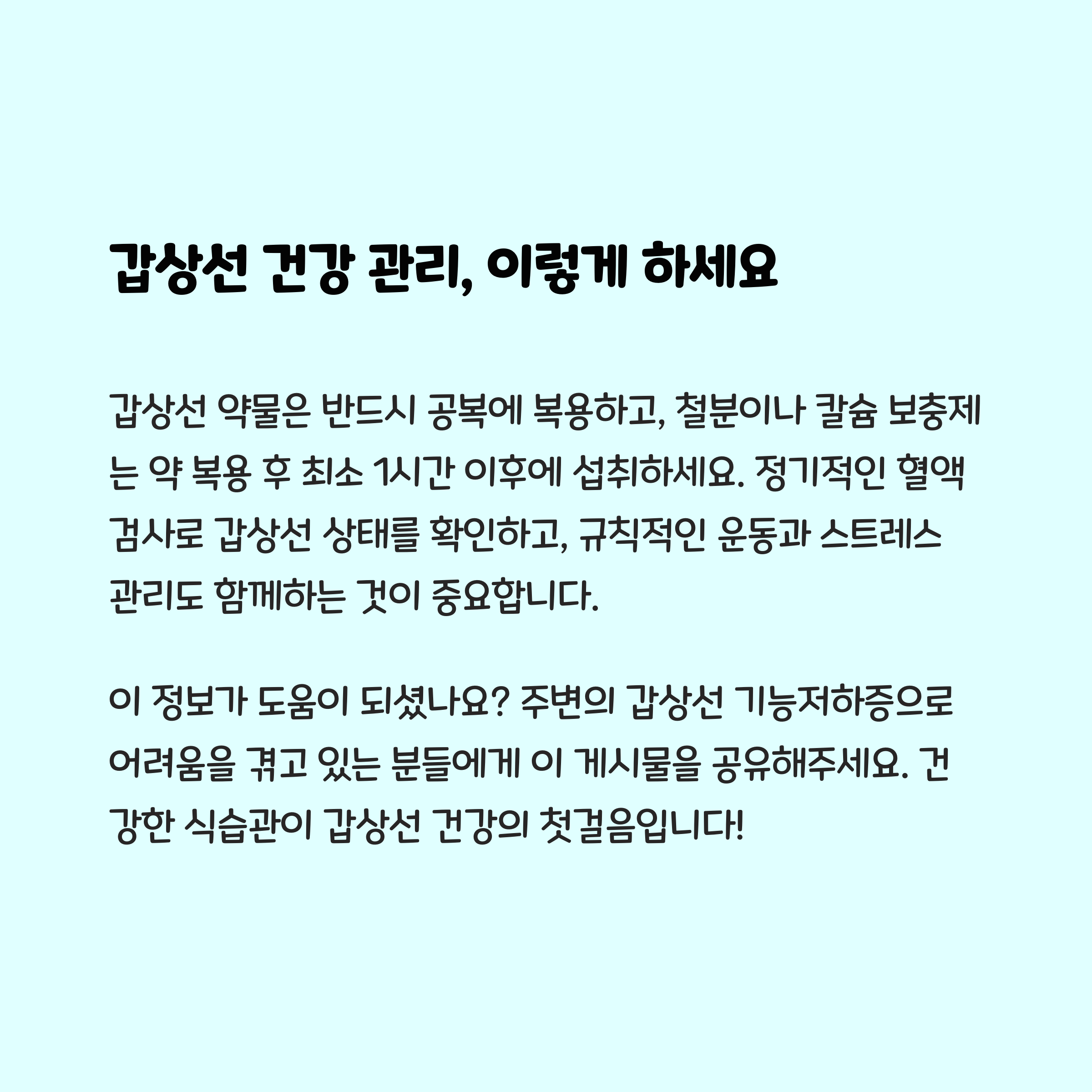 - 정기적인 혈액검사로 TSH 수치 확인