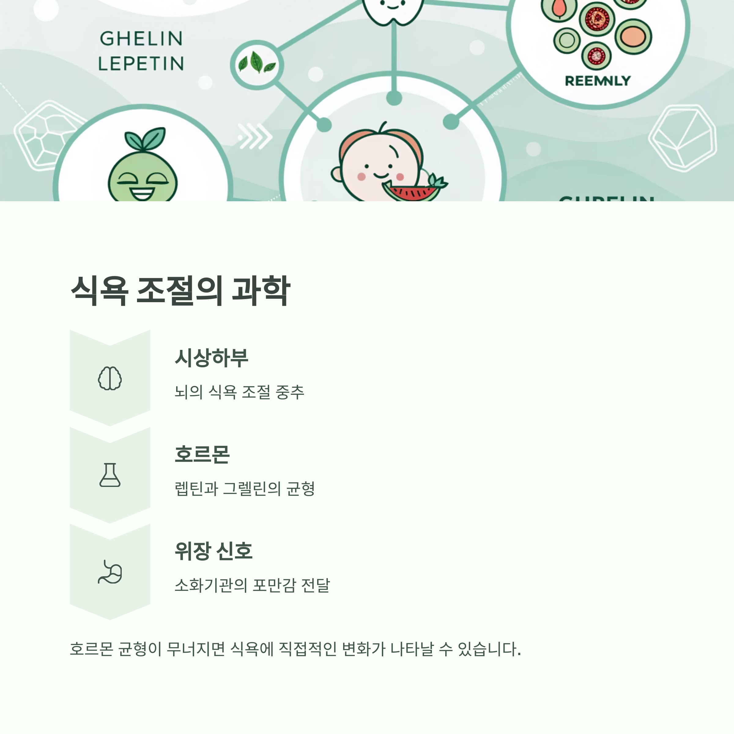 식욕은 단순한 배고픔이 아니라 시상하부, 호르몬, 위장 신호 등이 복합적으로 작용한 결과입니다.