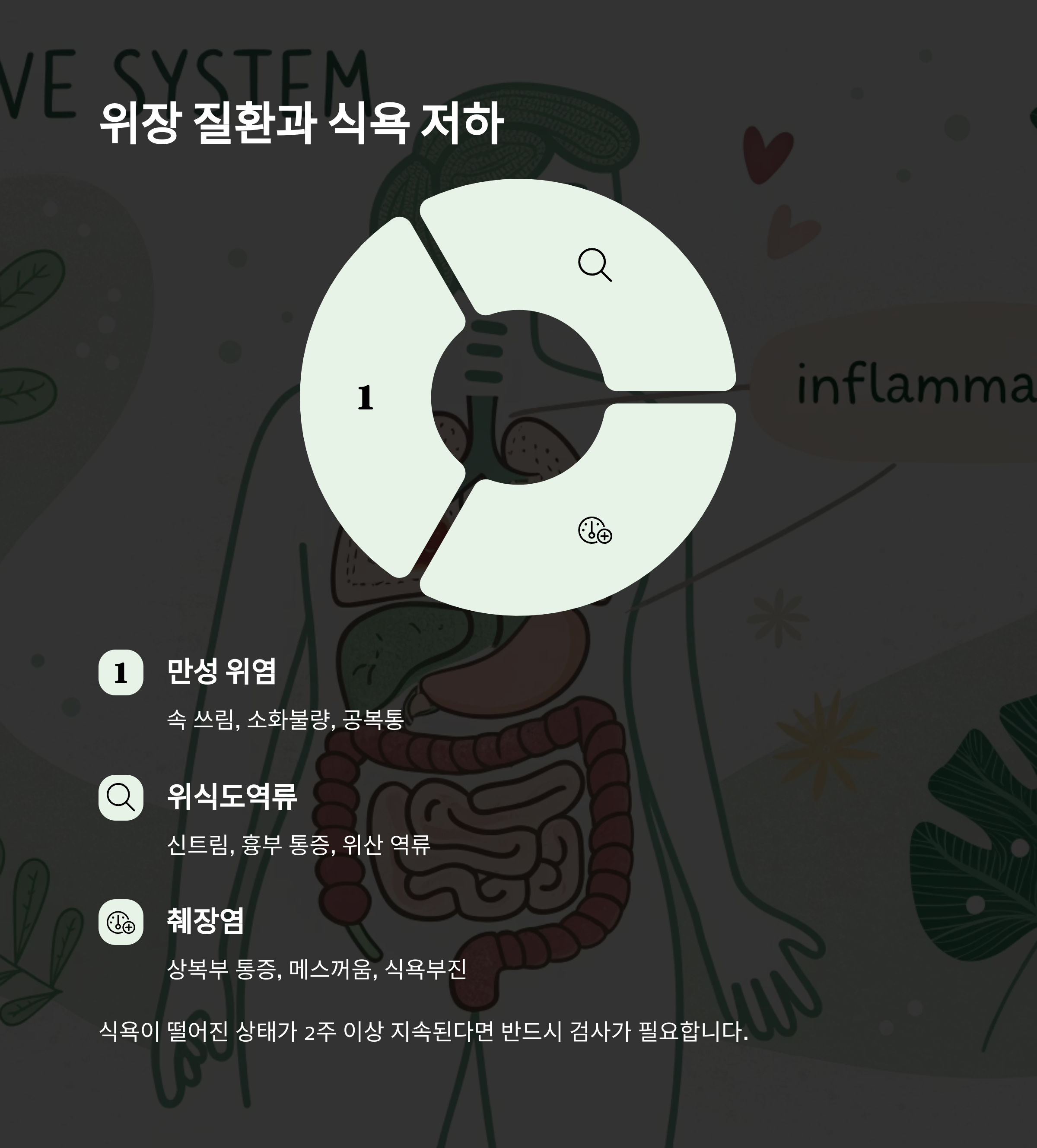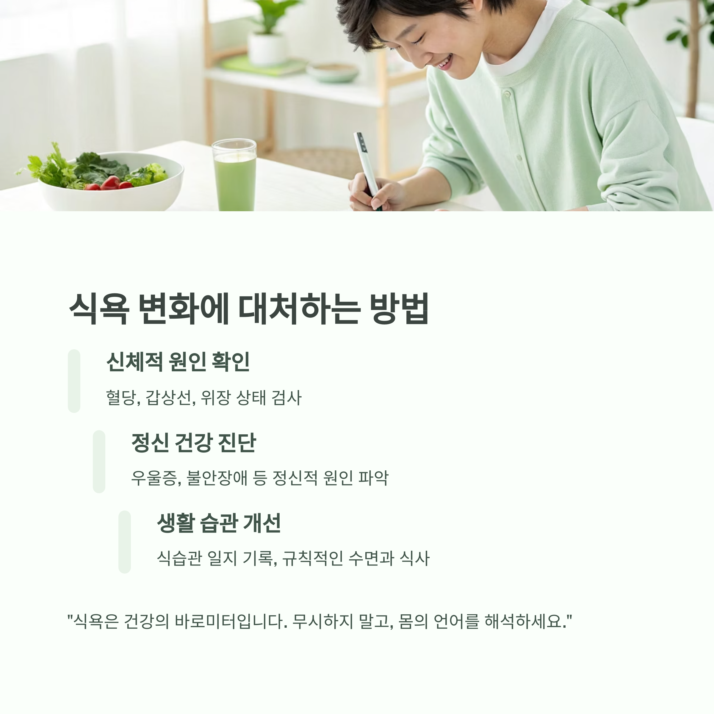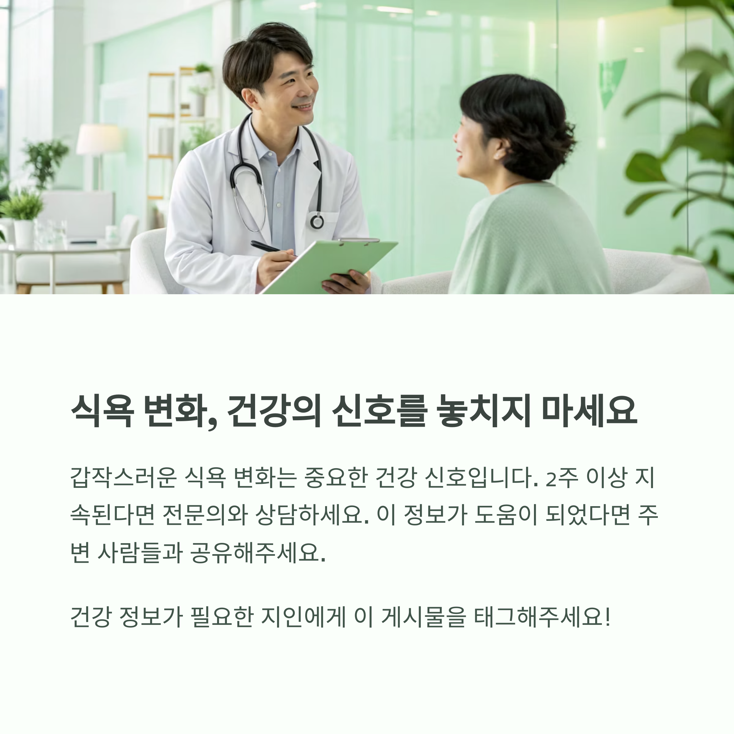 "식욕은 건강의 바로미터입니다. 무시하지 말고, 몸의 언어를 해석하세요."