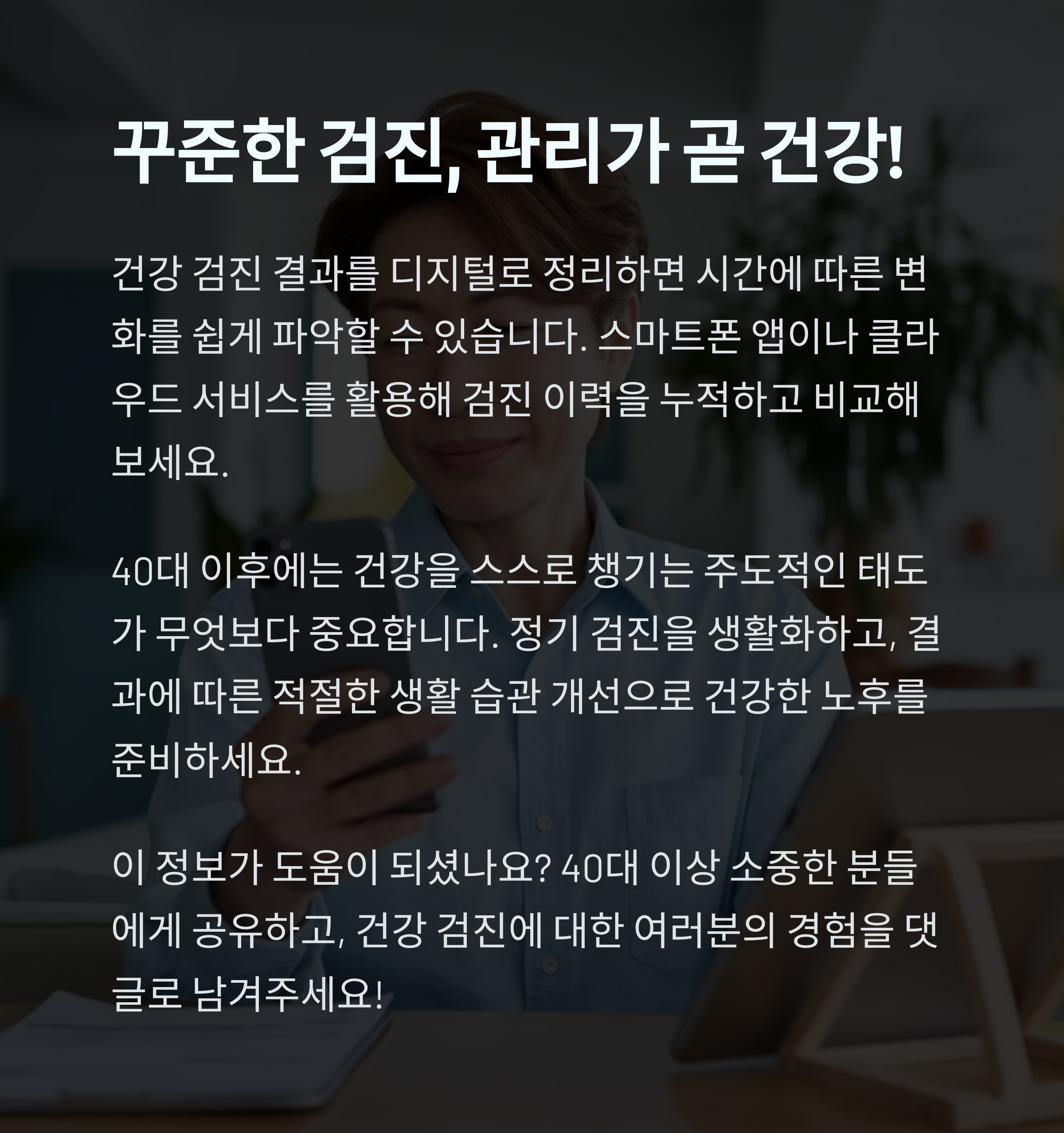 아직도 2년에 한 번씩 건강검진 받으시나요? 40대 이후라면 ‘이 주기’로 바꿔야 진짜 건강을 지킬 수 있습니다.