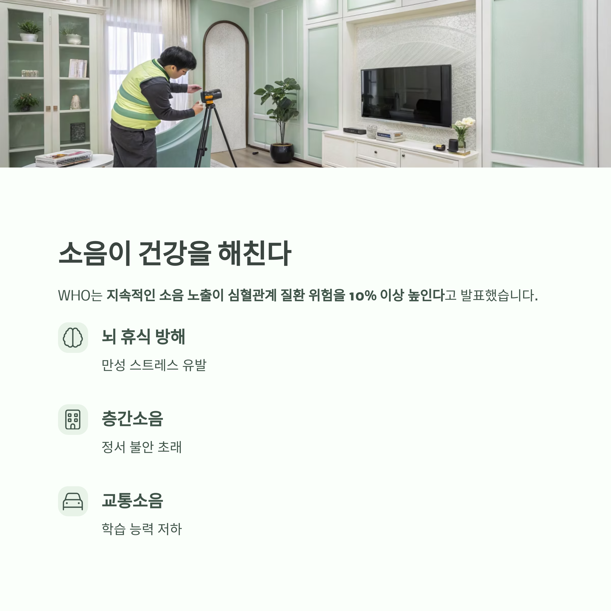 단열보다 방음 설계가 중요한 이유는, 뇌의 휴식과 스트레스를 좌우하기 때문입니다.