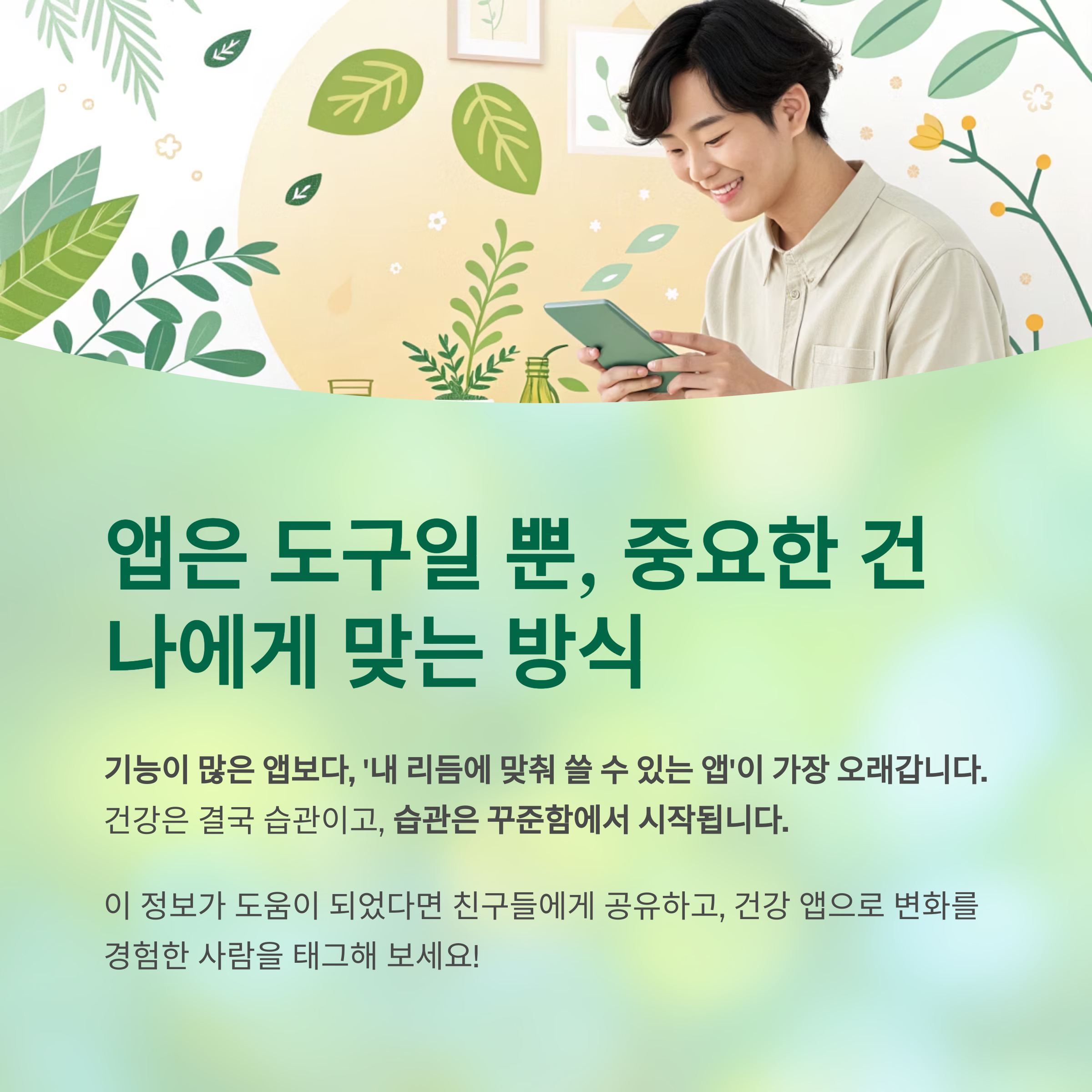 당신이 앱을 어떻게 활용하느냐가 진짜 건강의 시작점입니다.