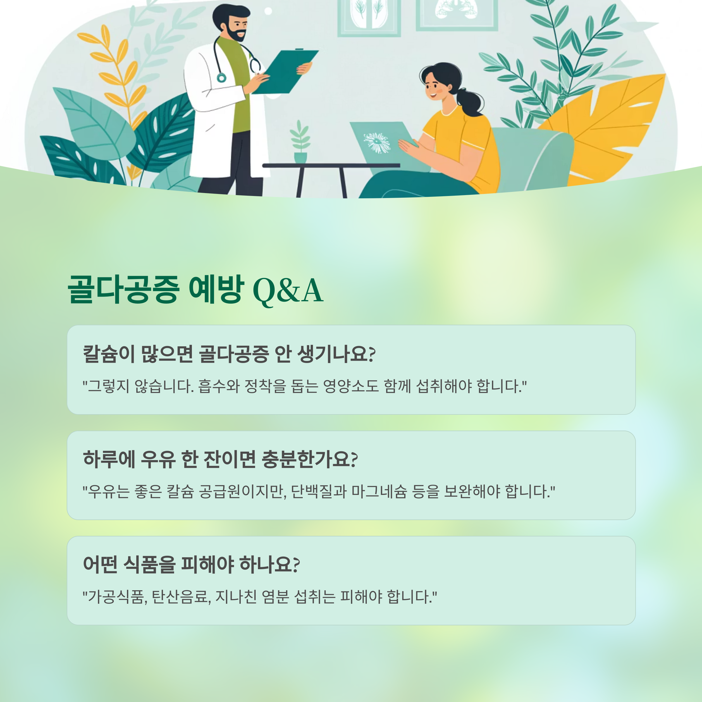 Q. 칼슘이 많으면 골다공증 안 생기나요?
