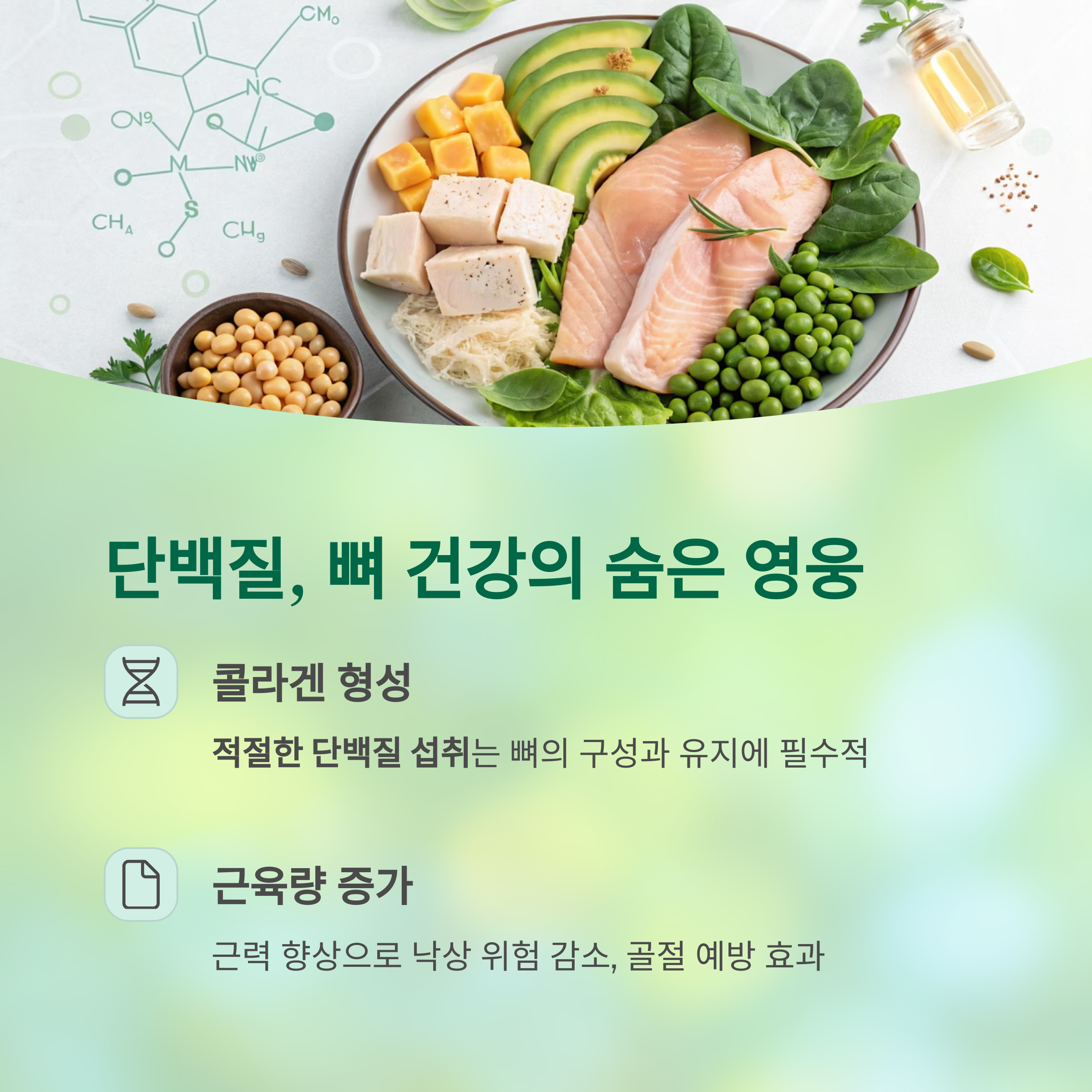 적절한 단백질 섭취는 오히려 뼈의 구성과 유지에 꼭 필요합니다.