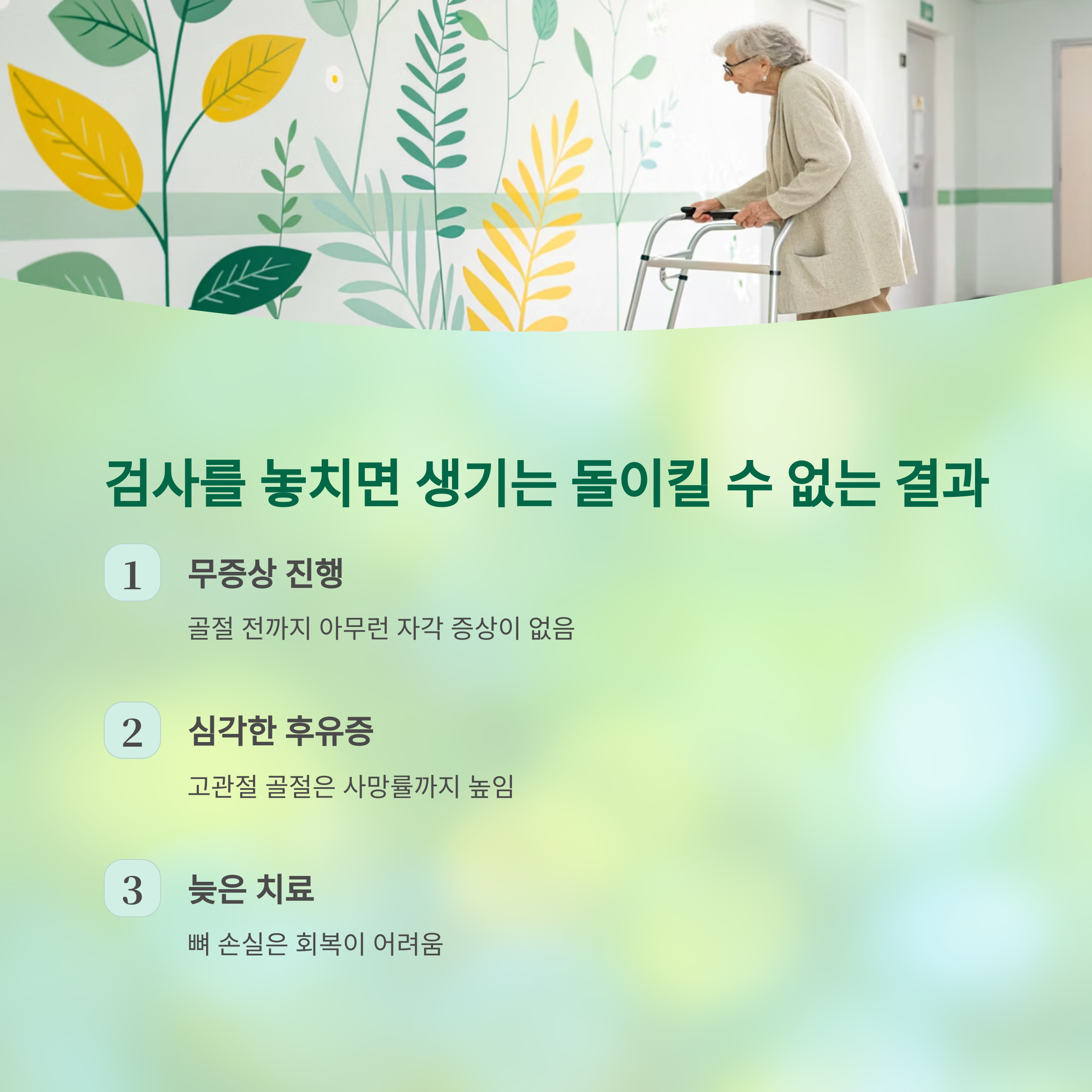 이 글에서는 골밀도 검사를 놓쳤을 때 생길 수 있는 위험과