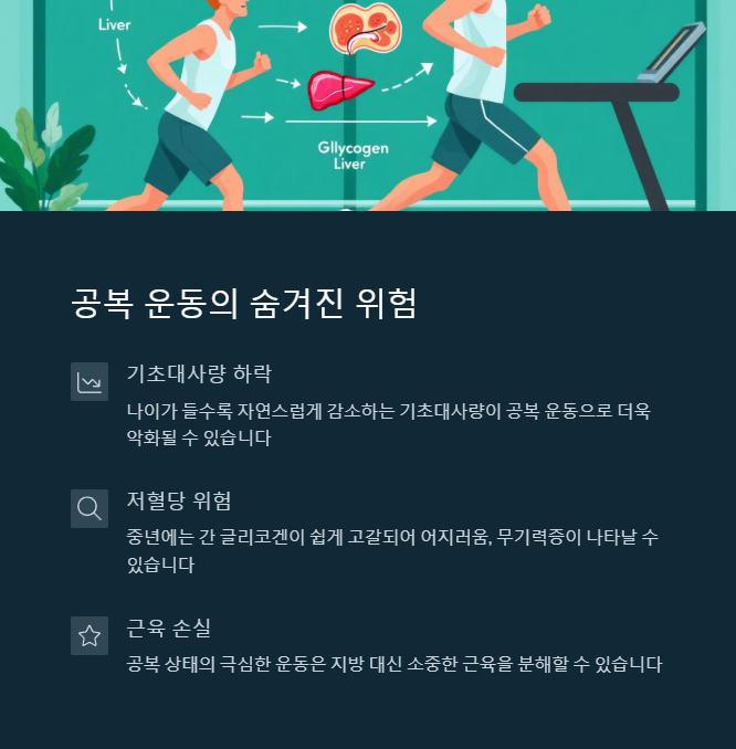 공복 운동이 지방을 더 연소시킨다는 말, 다들 한 번쯤 들어보셨죠? 맞는 말이긴 해요. 그런데 그게 전부는 아니랍니다. 특히 중년 이후에는 에너지 저장고인 간 글리코겐이 쉽게 고갈되기 때문에, 빈속으로 무리하게 운동하면 저혈당이 올 수 있어요.