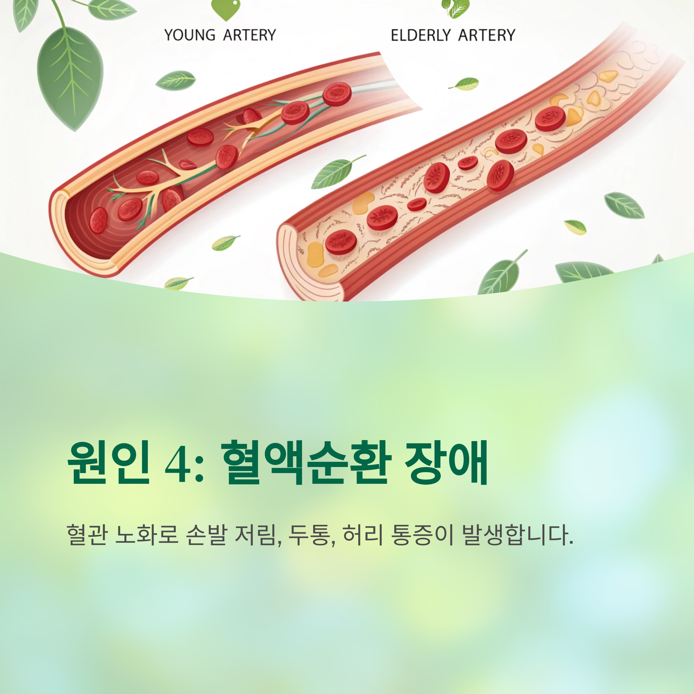 중년 이후 혈관 노화가 시작되면 혈액순환이 원활하지 않아 손발 저림, 두통, 허리 통증 같은 증상이 빈번히 나타납니다. 혈액순환 장애는 초기에 적극 관리하면 충분히 예방할 수 있습니다. 꾸준한 유산소 운동과 혈액순환을 촉진하는 스트레칭, 따뜻한 목욕 습관을 통해 혈관 건강을 관리하면 통증이 눈에 띄게 개선됩니다.