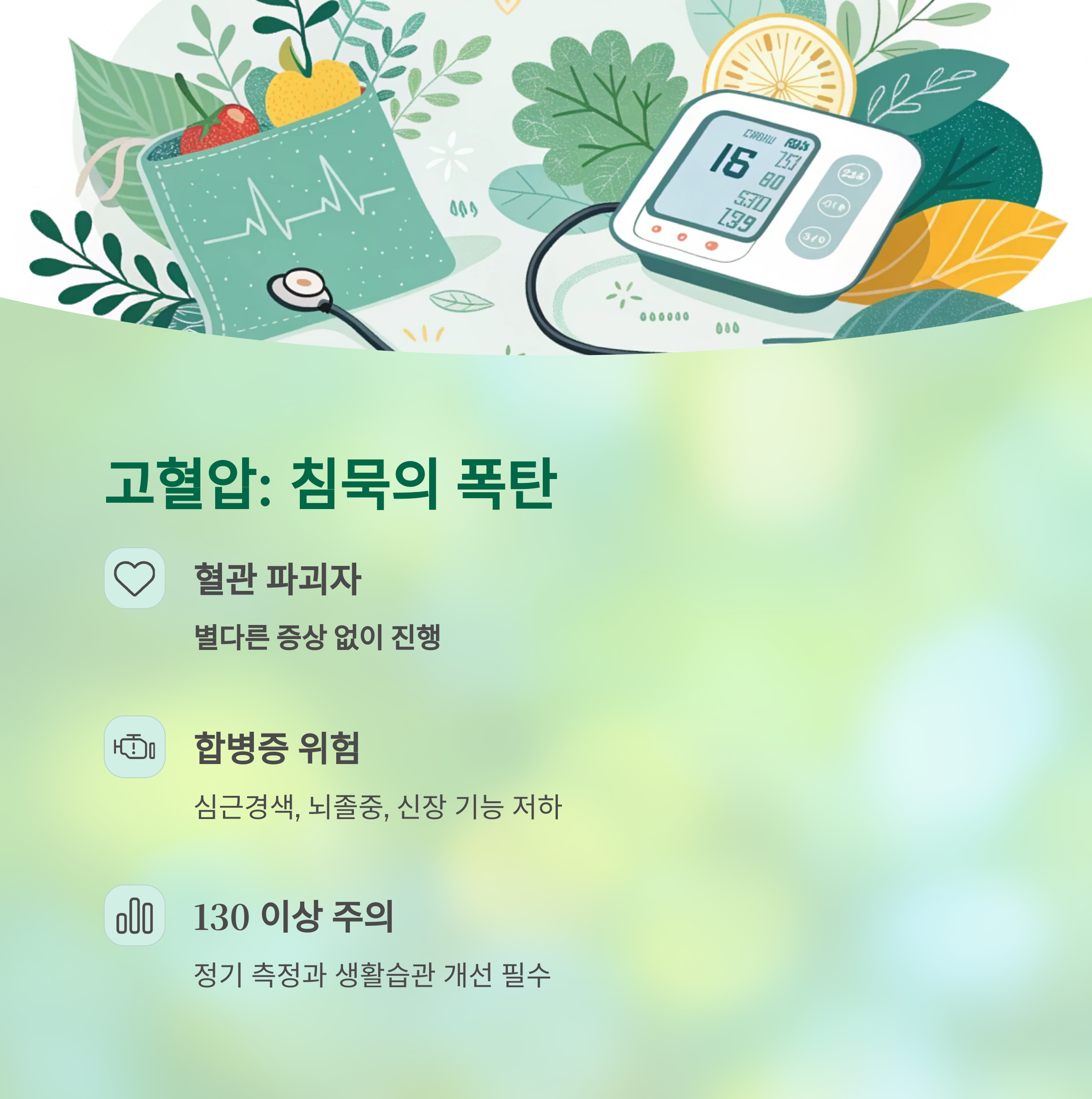 고혈압은 별다른 증상이 없이 혈관을 서서히 파괴합니다.