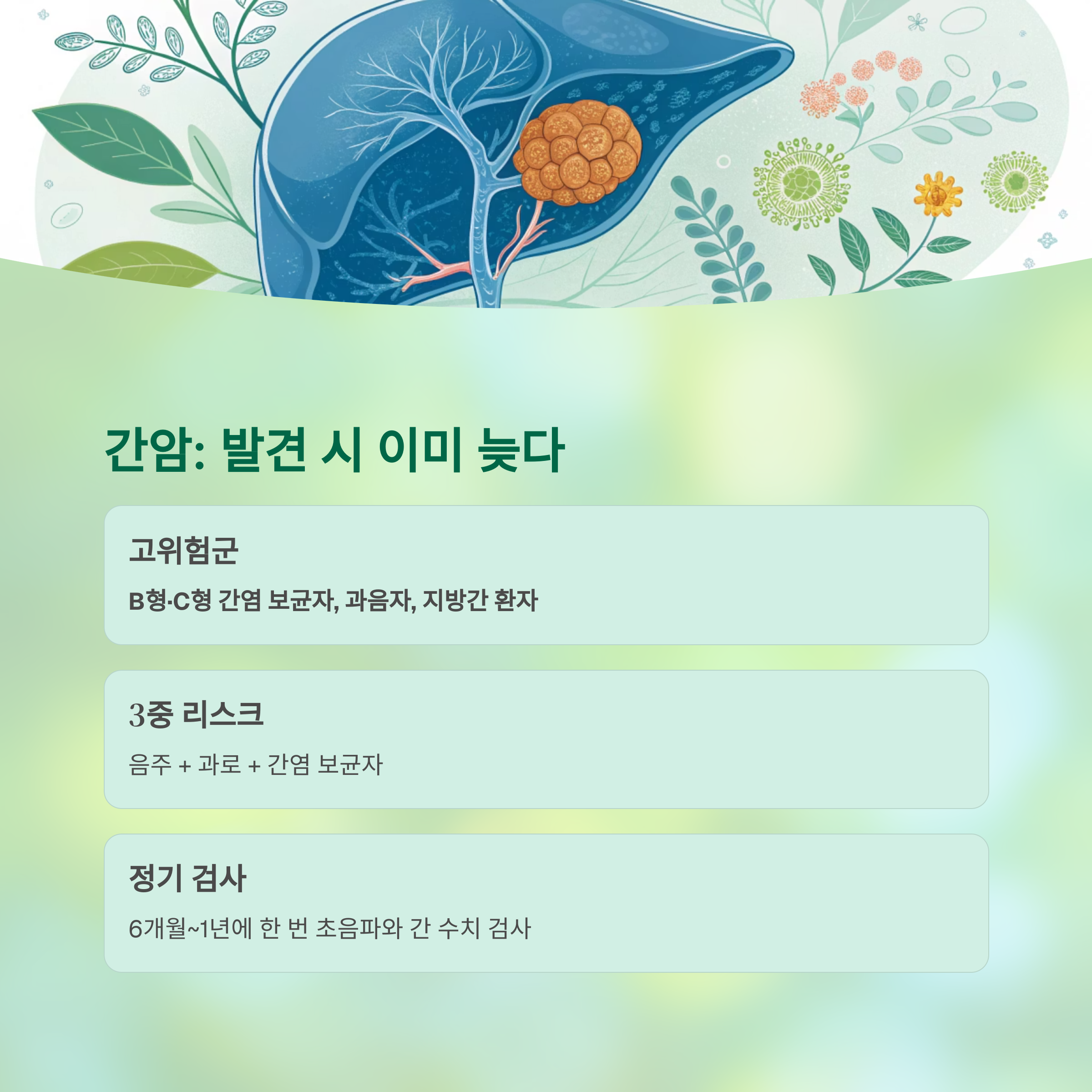 B형 간염, C형 간염 보균자, 과음자, 지방간 환자는 고위험군입니다.