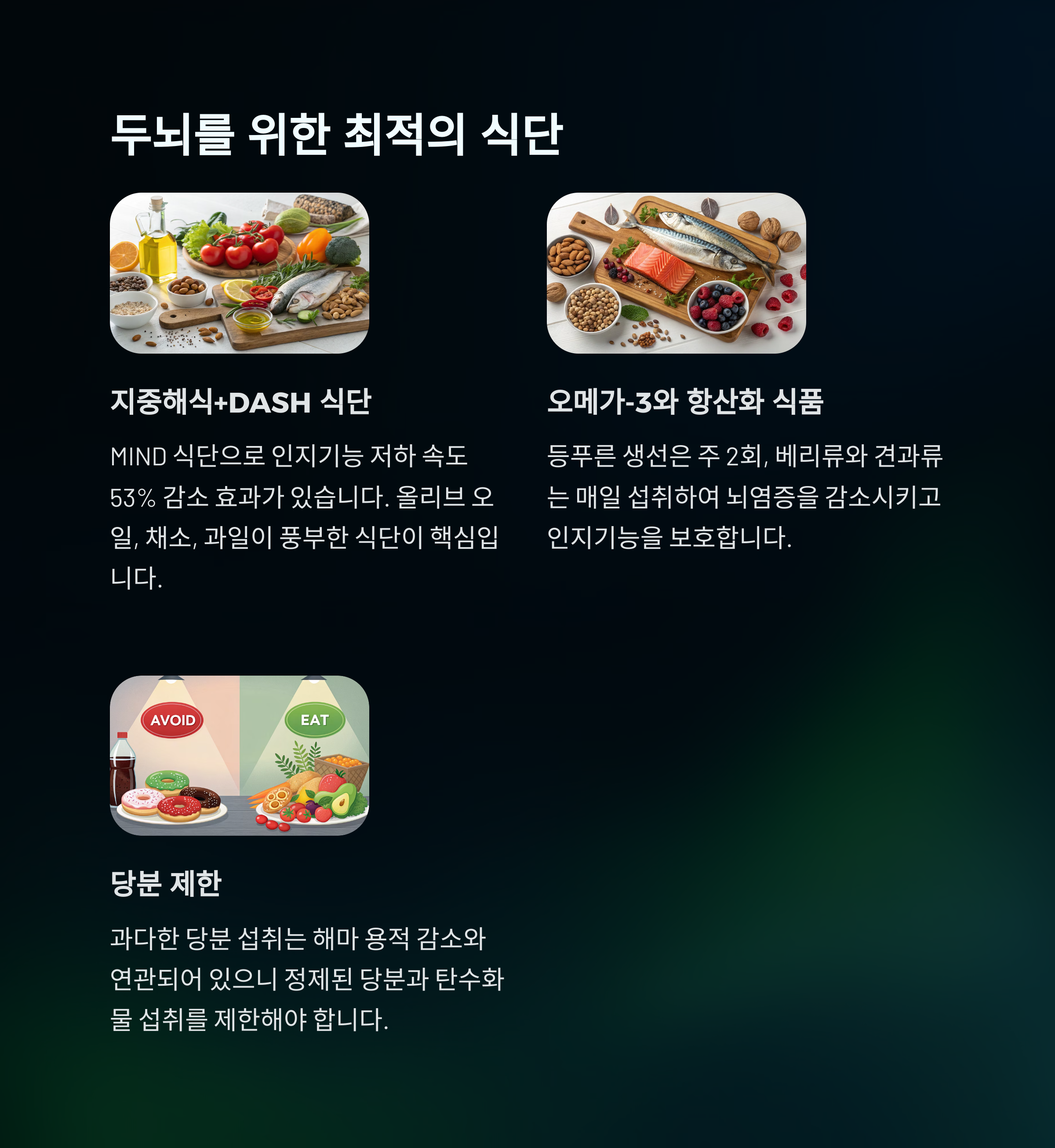 "먹는 것이 곧 뇌 건강"이라는 점을 명심하세요.