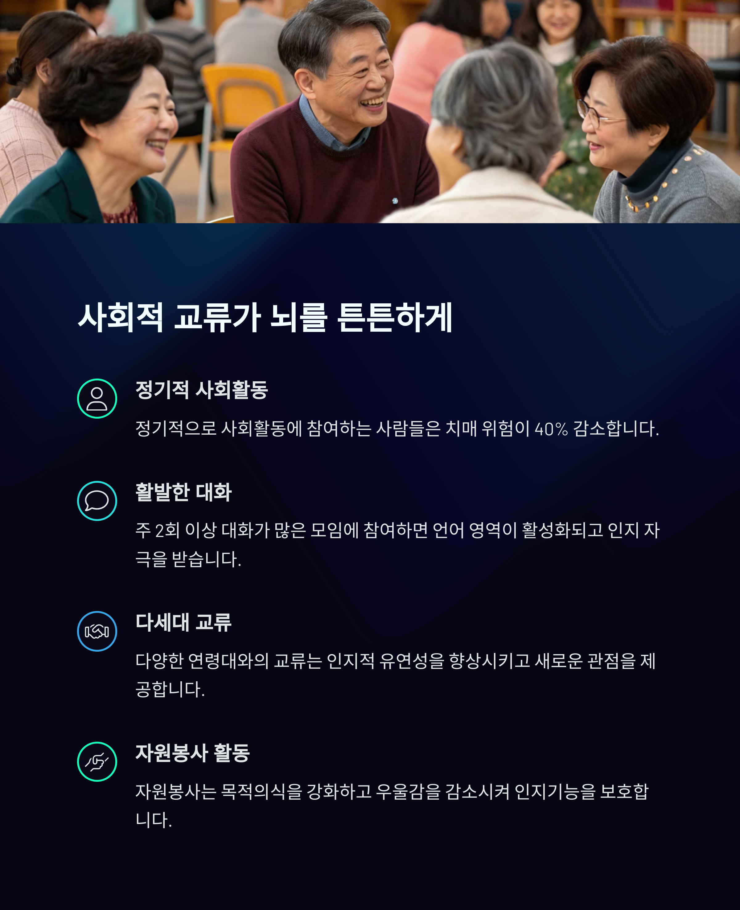 활발한 인간관계가 최고의 치매 예방약입니다.