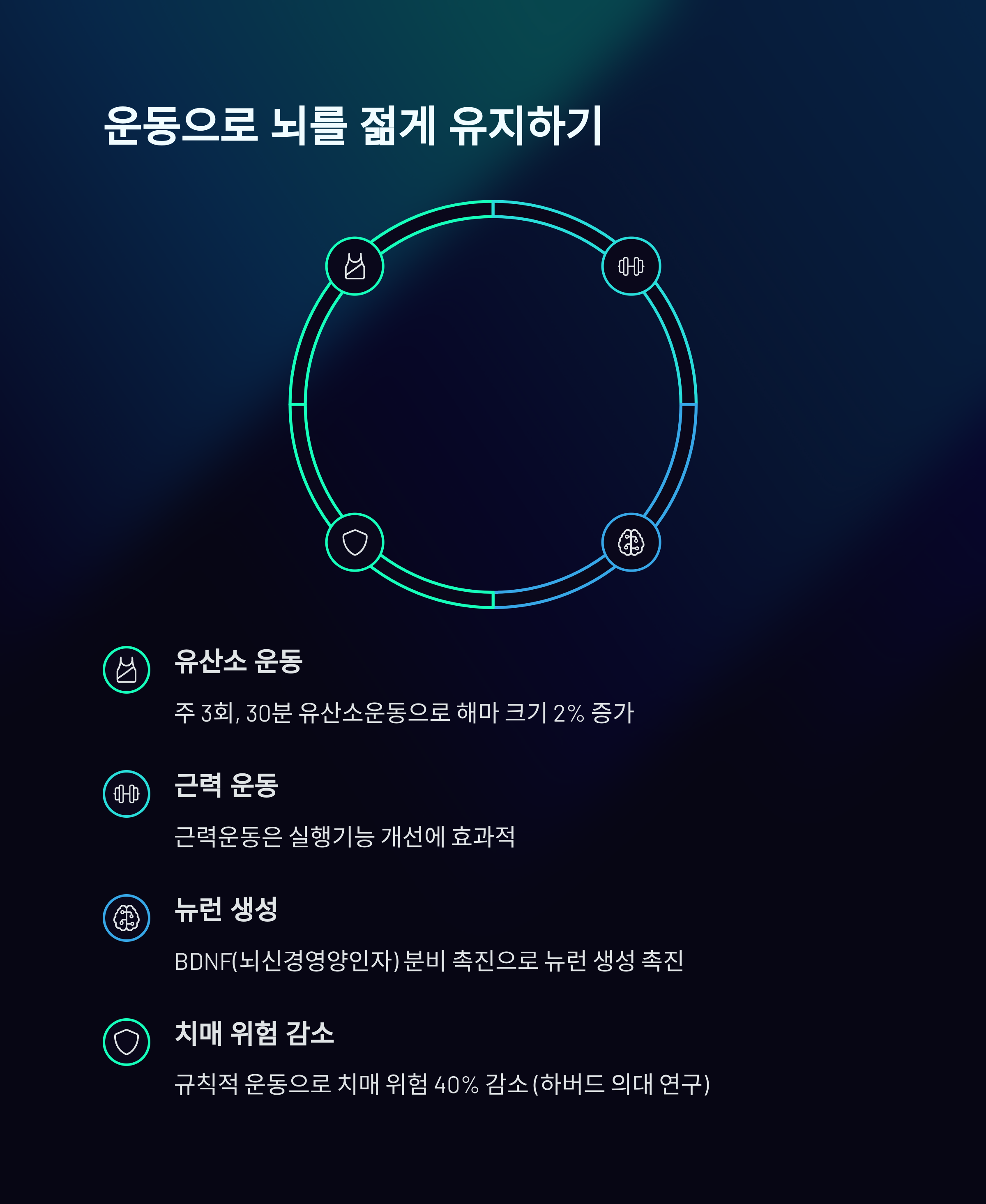 "주 3회 이상 30분 운동"이 뇌 기능 저하를 막는 열쇠입니다.