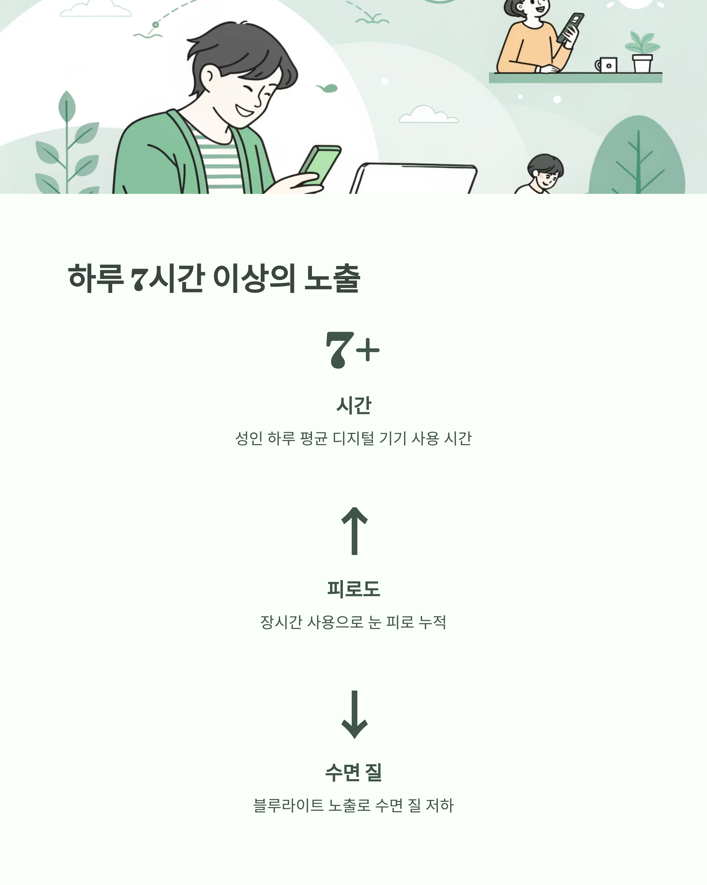 최근 조사에 따르면 성인은 하루 평균 7시간 이상 디지털 기기에 노출되고 있으며,