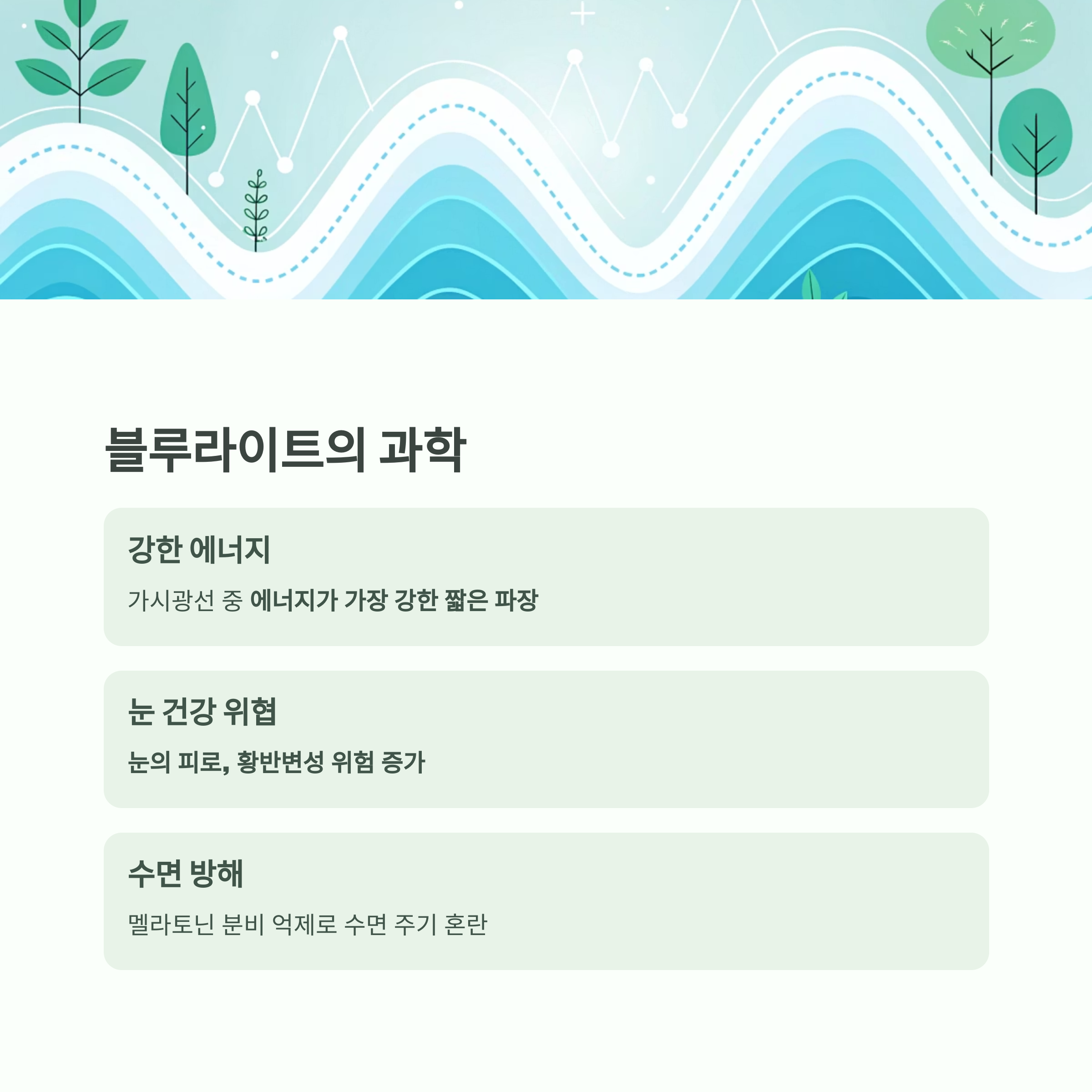 이 빛은 망막에 도달해 눈의 피로, 황반변성 위험을 높일 수 있습니다.