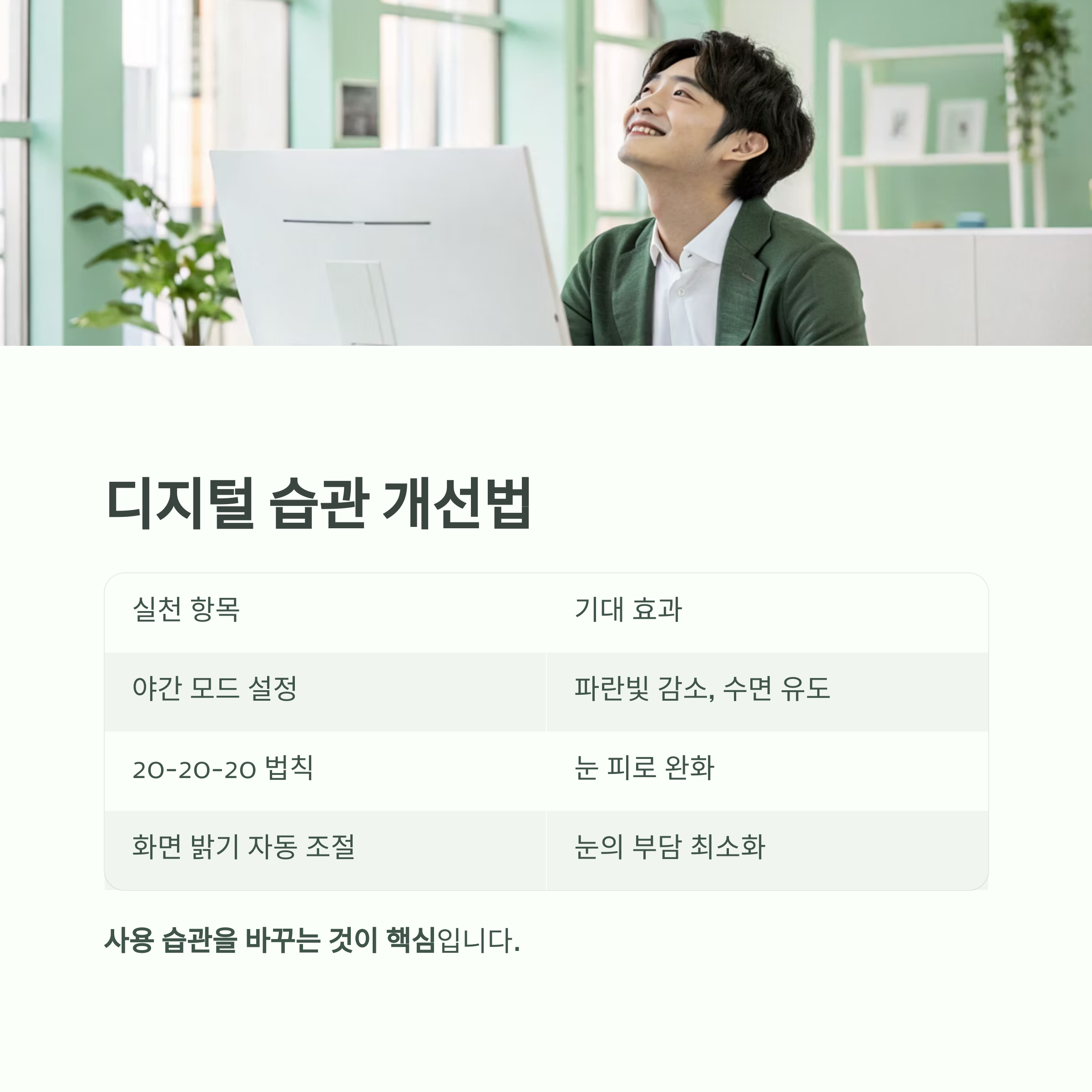 생활 속에서 블루라이트를 효과적으로 차단할 수 있는 7가지 실천법을 소개합니다.