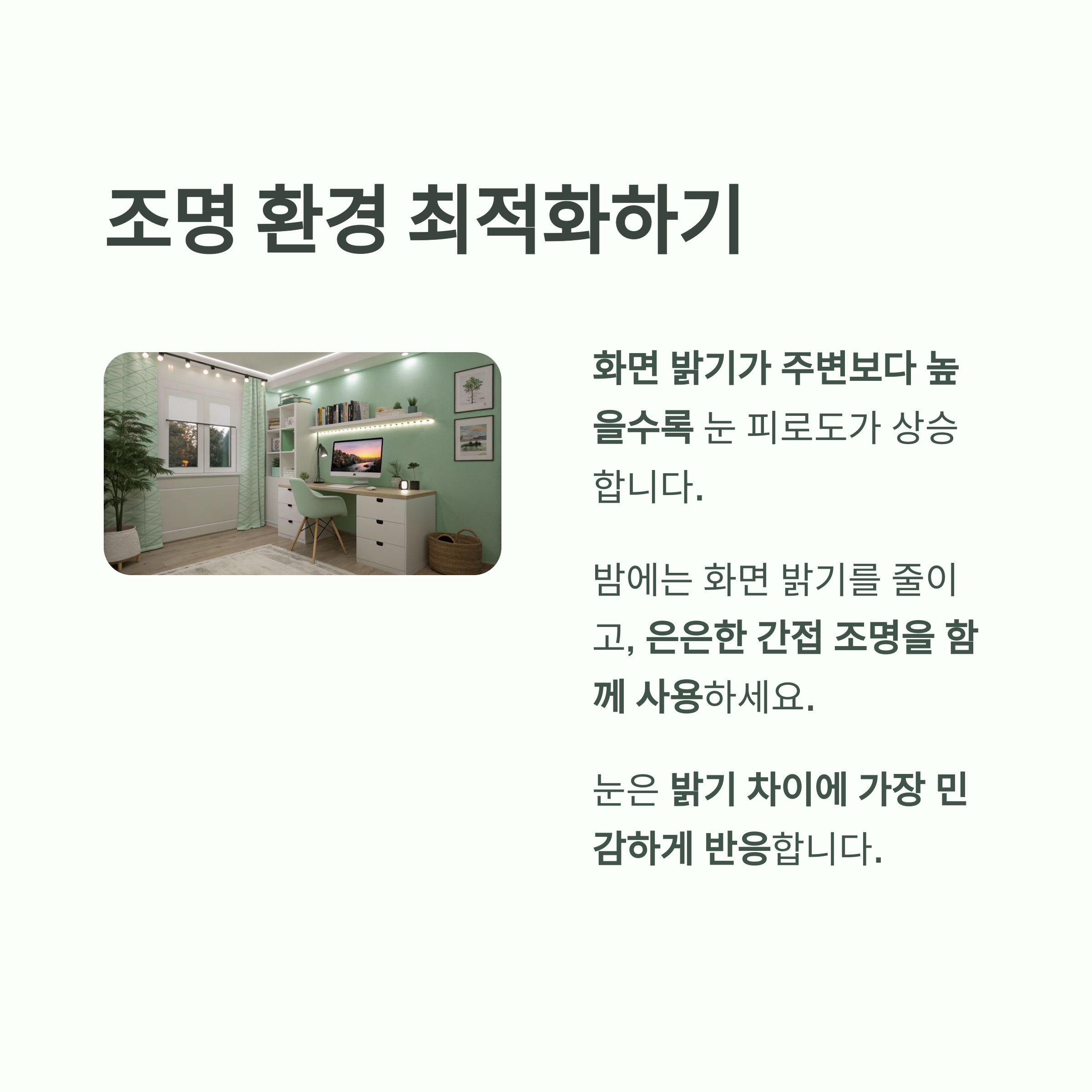 | 밤 | 간접조명 + 필터 | 수면 유도 |