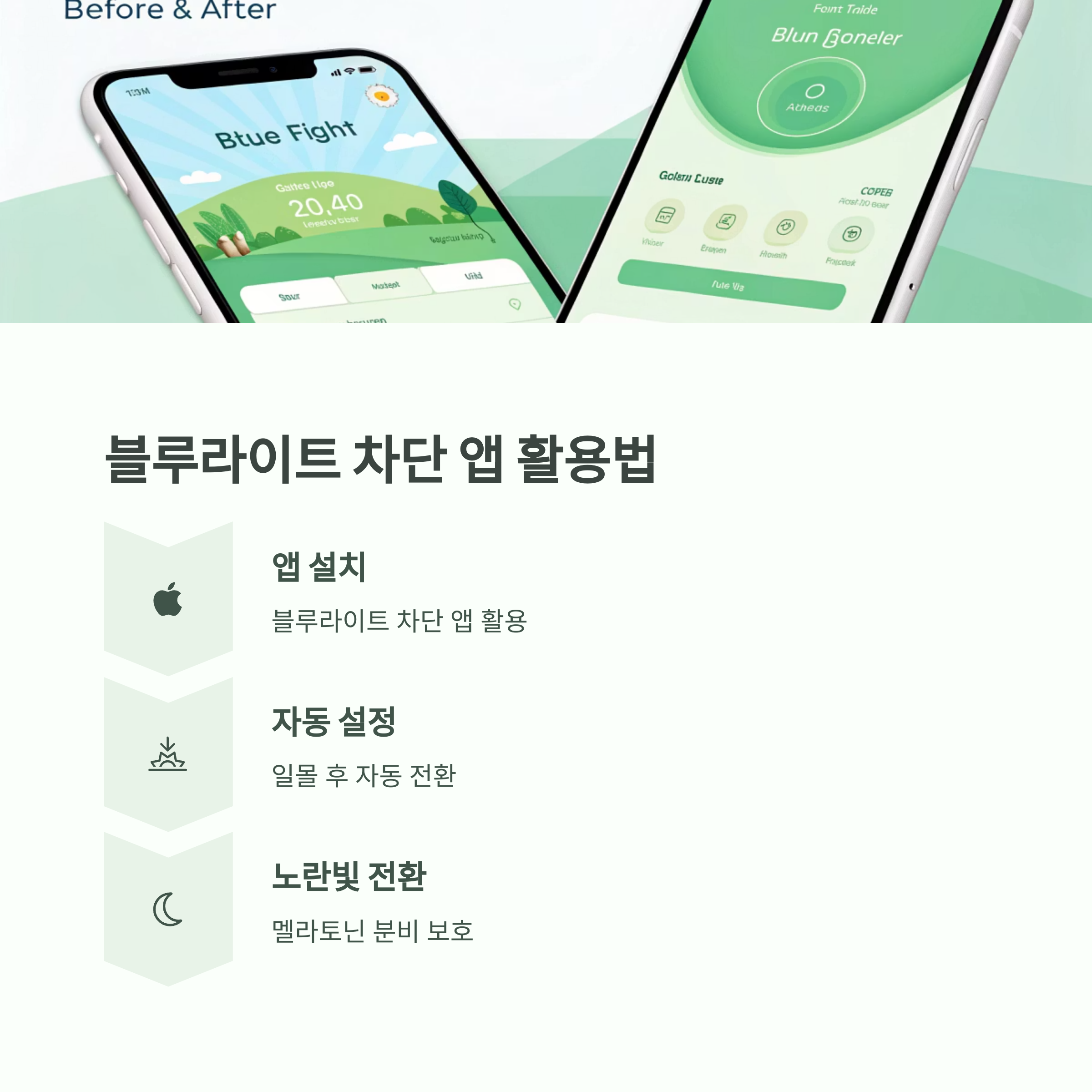 블루라이트 차단 앱 또는 기본 내장 필터 기능을 제공합니다.