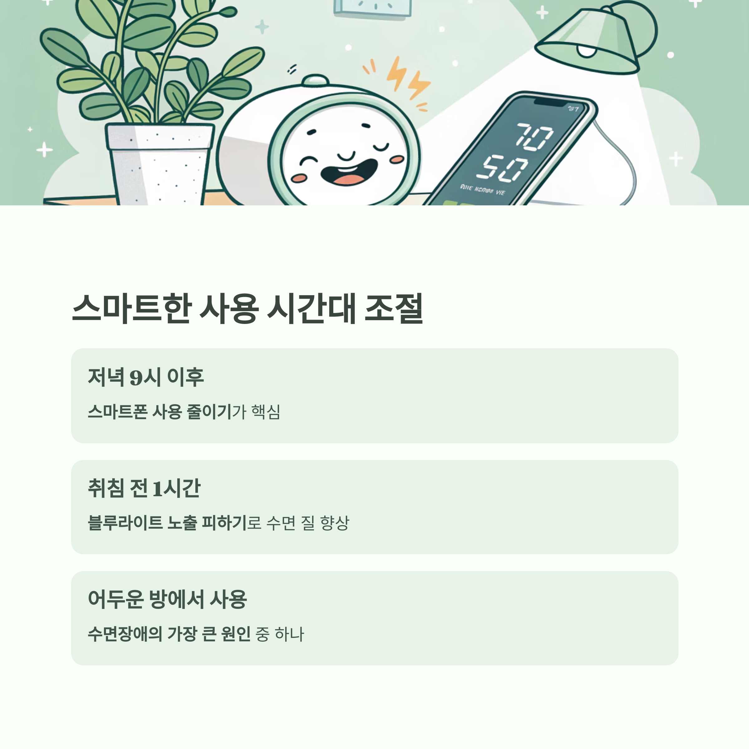 저녁 9시 이후에는 스마트폰 사용을 줄이는 것이 핵심입니다.