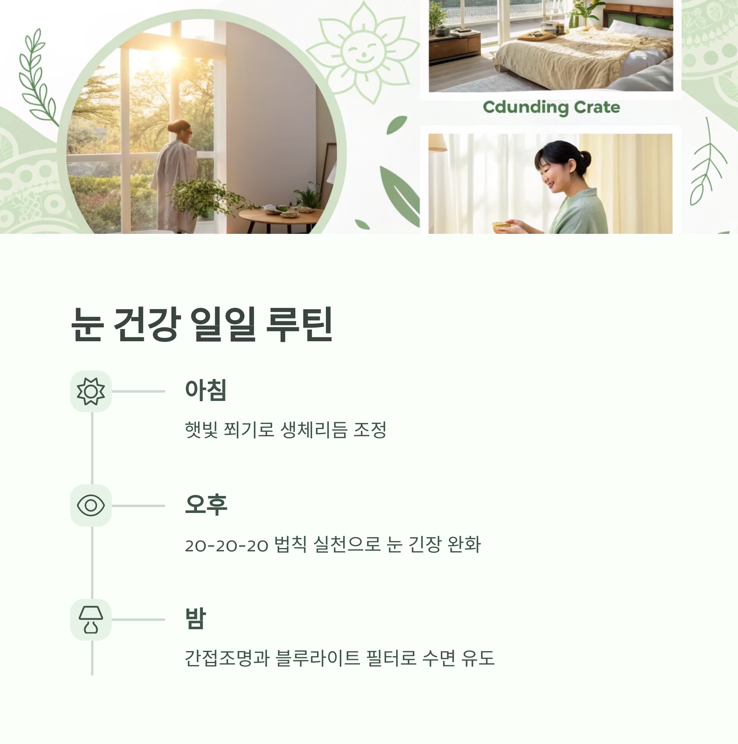 | 오후 | 20-20-20 실천 | 눈 긴장 완화 |