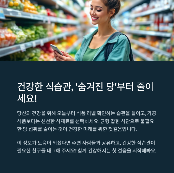 작은 습관 하나가 우리 건강에 큰 차이를 만든다는 사실, 믿어지시나요? 이제부터라도 식품 라벨 한 번 더 확인하고, 당류 함량을 의식적으로 줄여보세요. 처음엔 귀찮고 번거로울 수 있지만, 몸이 점점 가벼워지는 걸 느끼게 될 거예요.