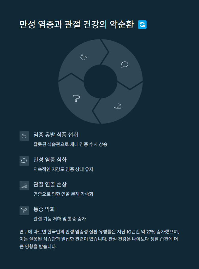 관절통은 단순히 나이가 들어서 생기는 증상만은 아니에요. 과도한 사용, 부상, 잘못된 자세, 그리고 만성 염증이 주된 원인입니다. 특히 염증은 몸속에서 조용히 진행되며 관절 연골을 서서히 손상시켜요. 우리가 자주 먹는 정제된 탄수화물, 설탕, 가공식품이 이런 염증을 키운다는 사실, 놀랍죠?