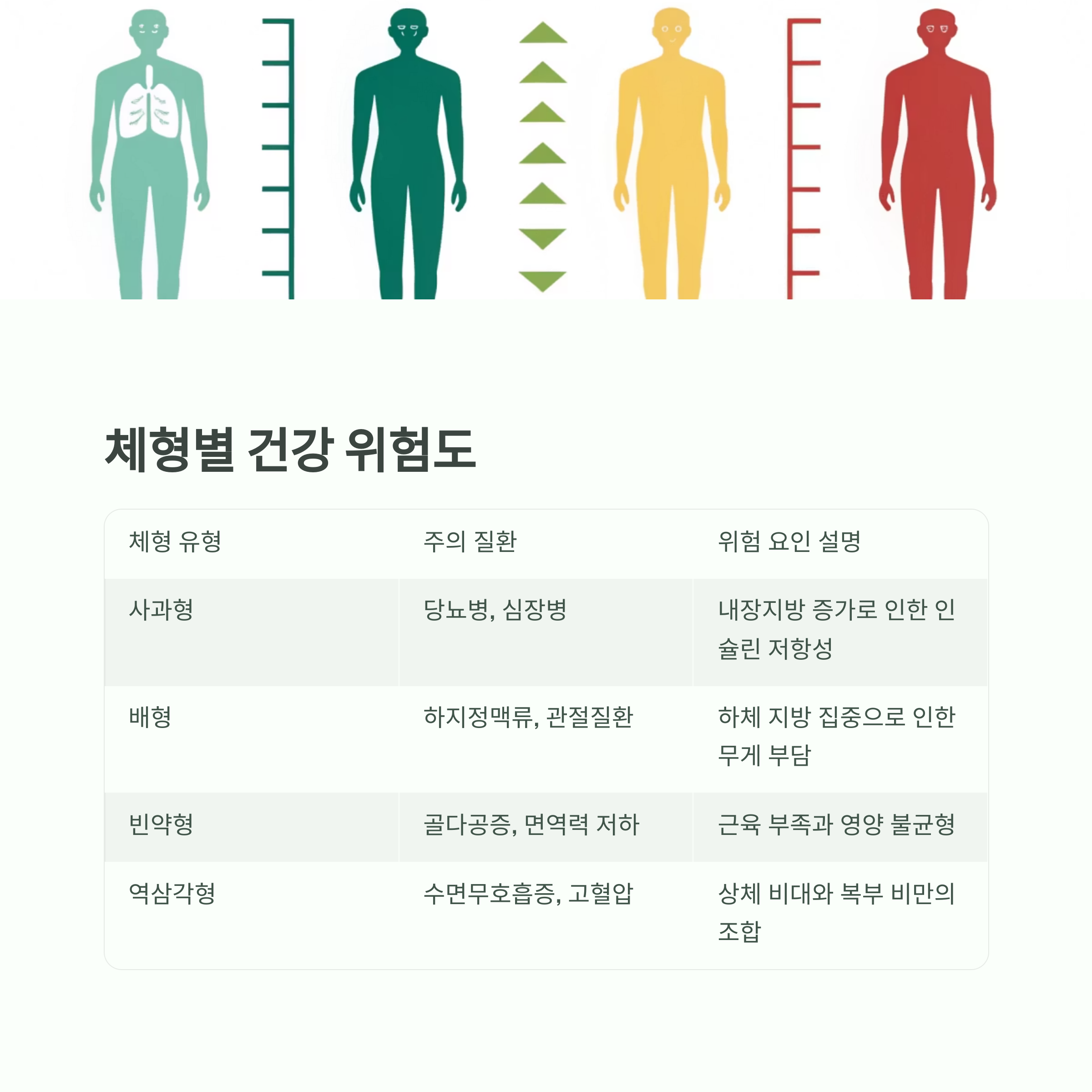 이번 글에서는 대표적인 체형 유형별로 어떤 건강 위험이 숨겨져 있는지 구체적으로 분석해 드립니다.