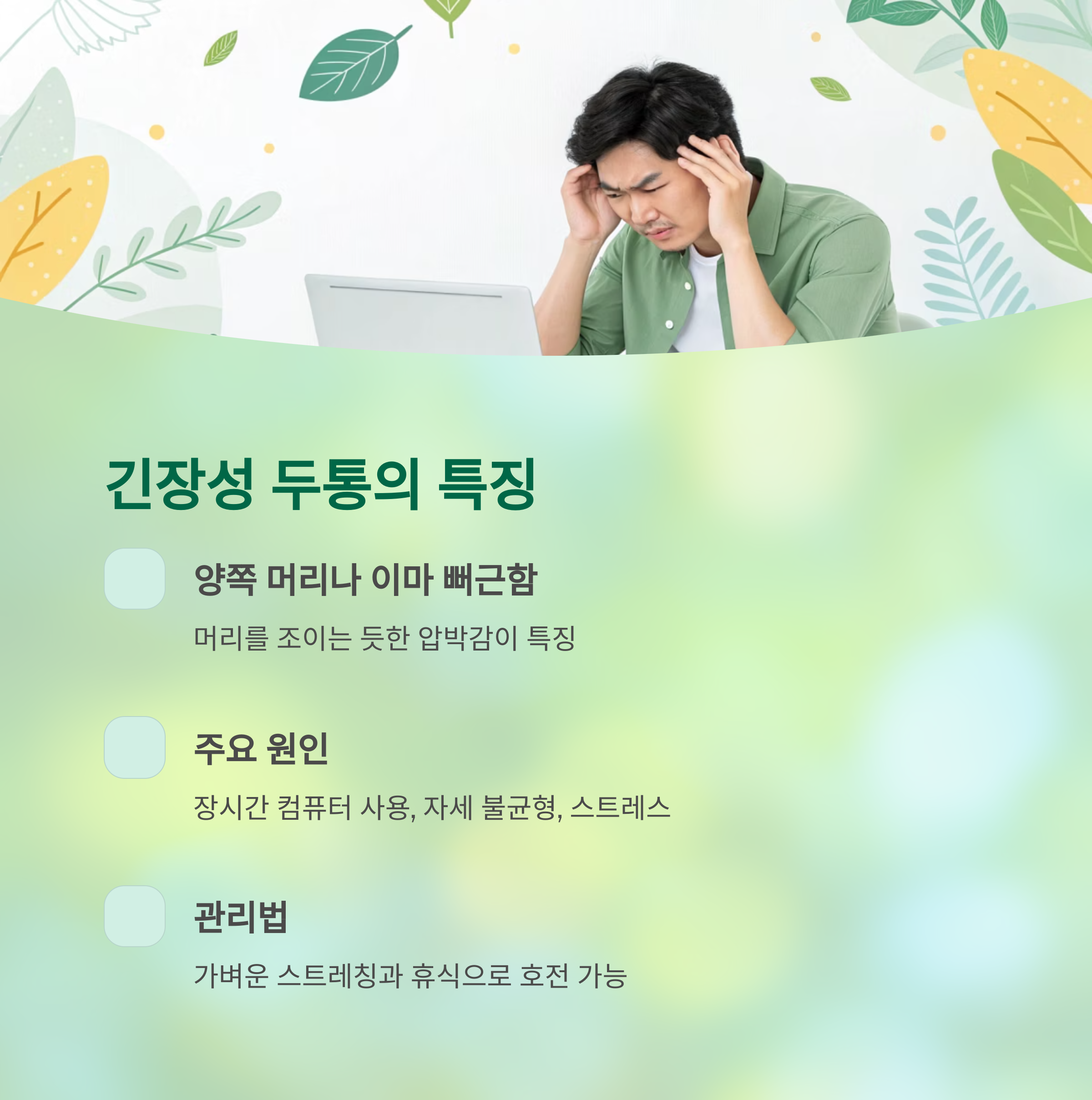 2. 긴장성 두통 – 압박감처럼 머리를 조이는 느낌