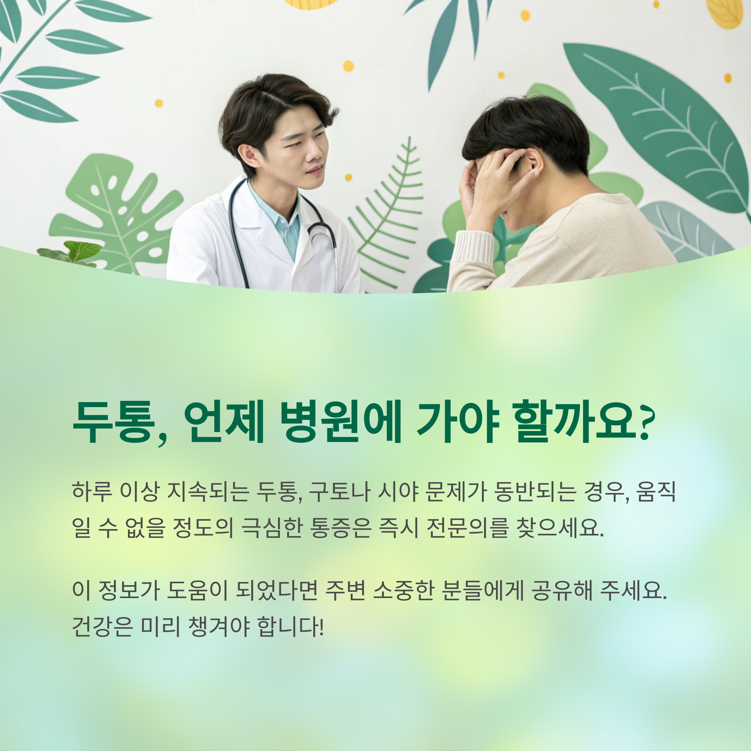 그 두통이 반복되거나 지속된다면 단순한 피로가 아닐 수 있습니다.