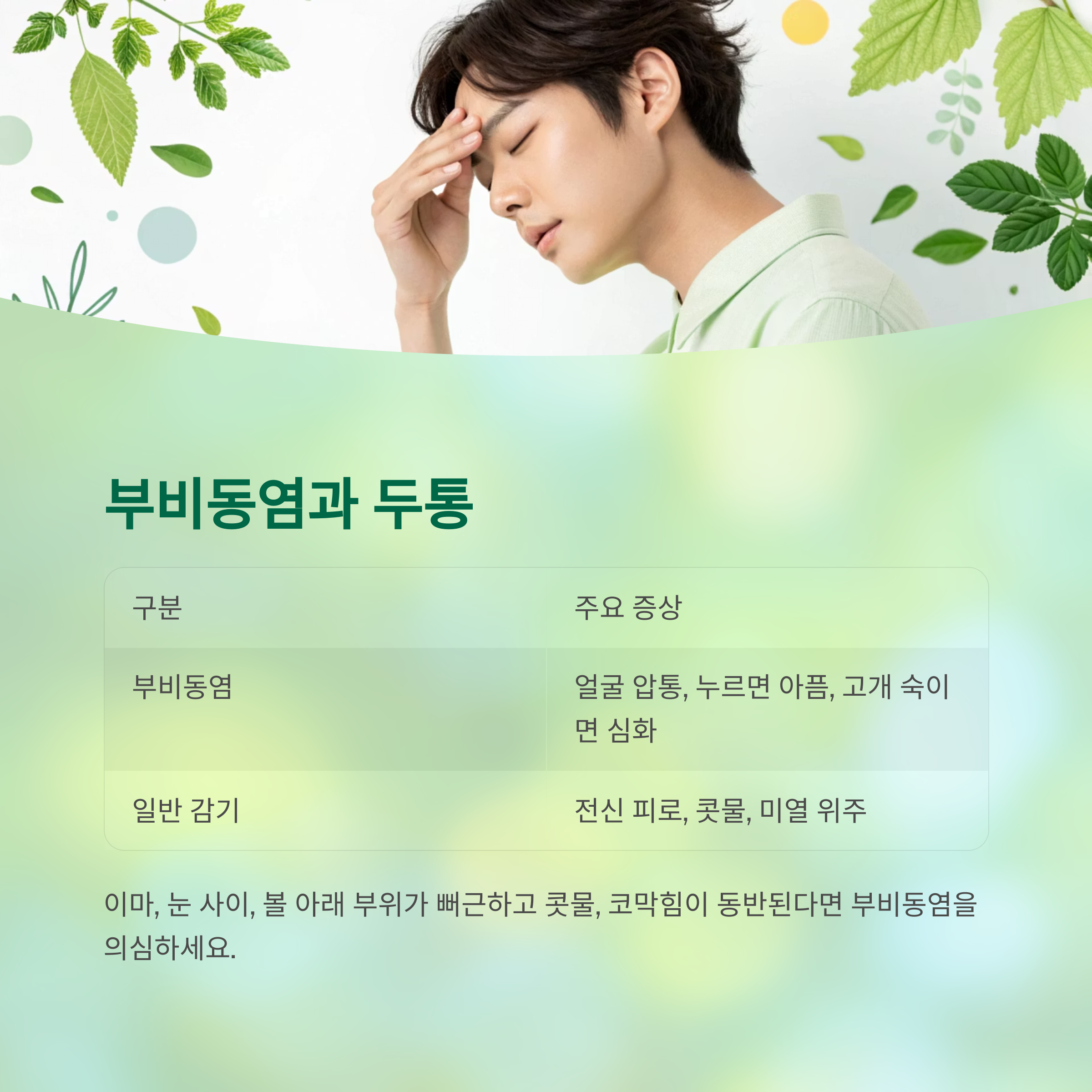 | 부비동염 | 얼굴 압통, 누르면 아픔, 고개 숙이면 심화 |