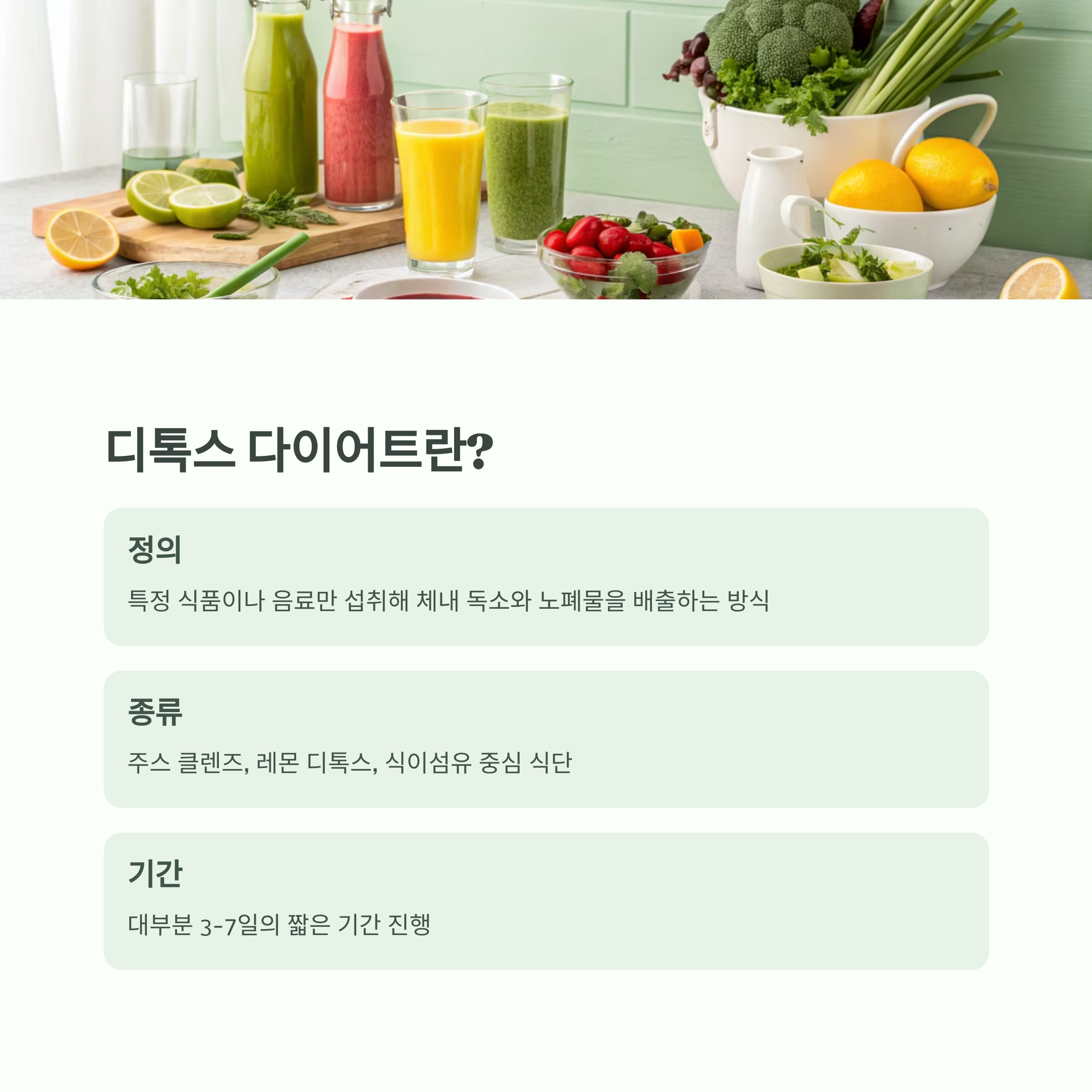 이 글에서는 디톡스 다이어트의 정의, 장점, 그리고 숨겨진 부작용과 한계까지 꼼꼼히 살펴봅니다.