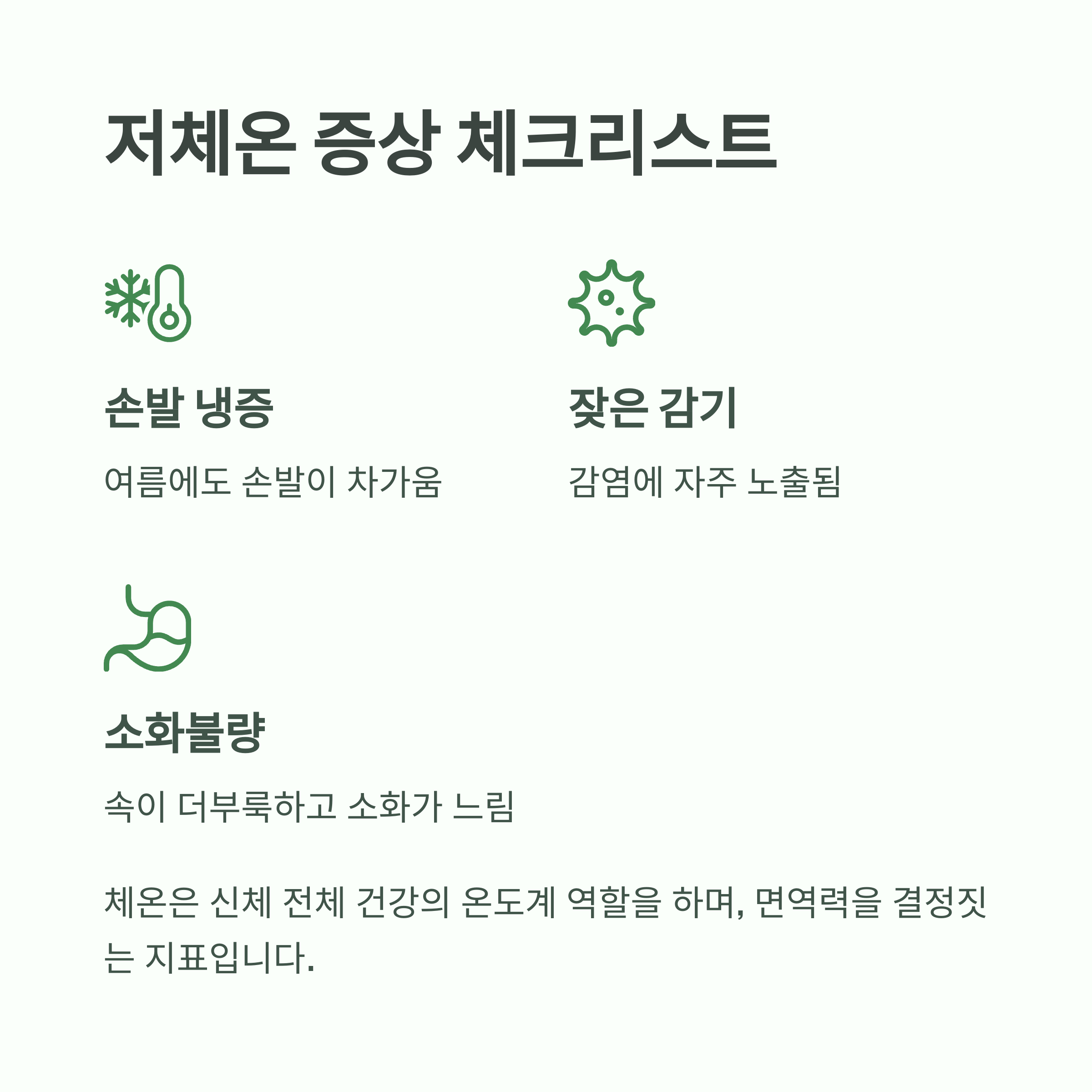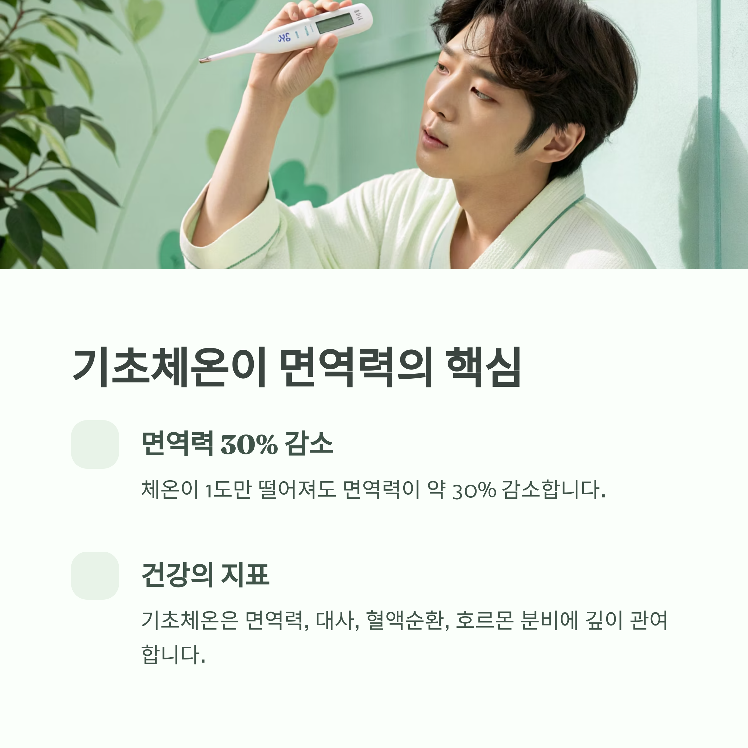 이처럼 체온은 신체 전체 건강의 온도계 역할을 하며, 면역력을 결정짓는 지표가 됩니다.