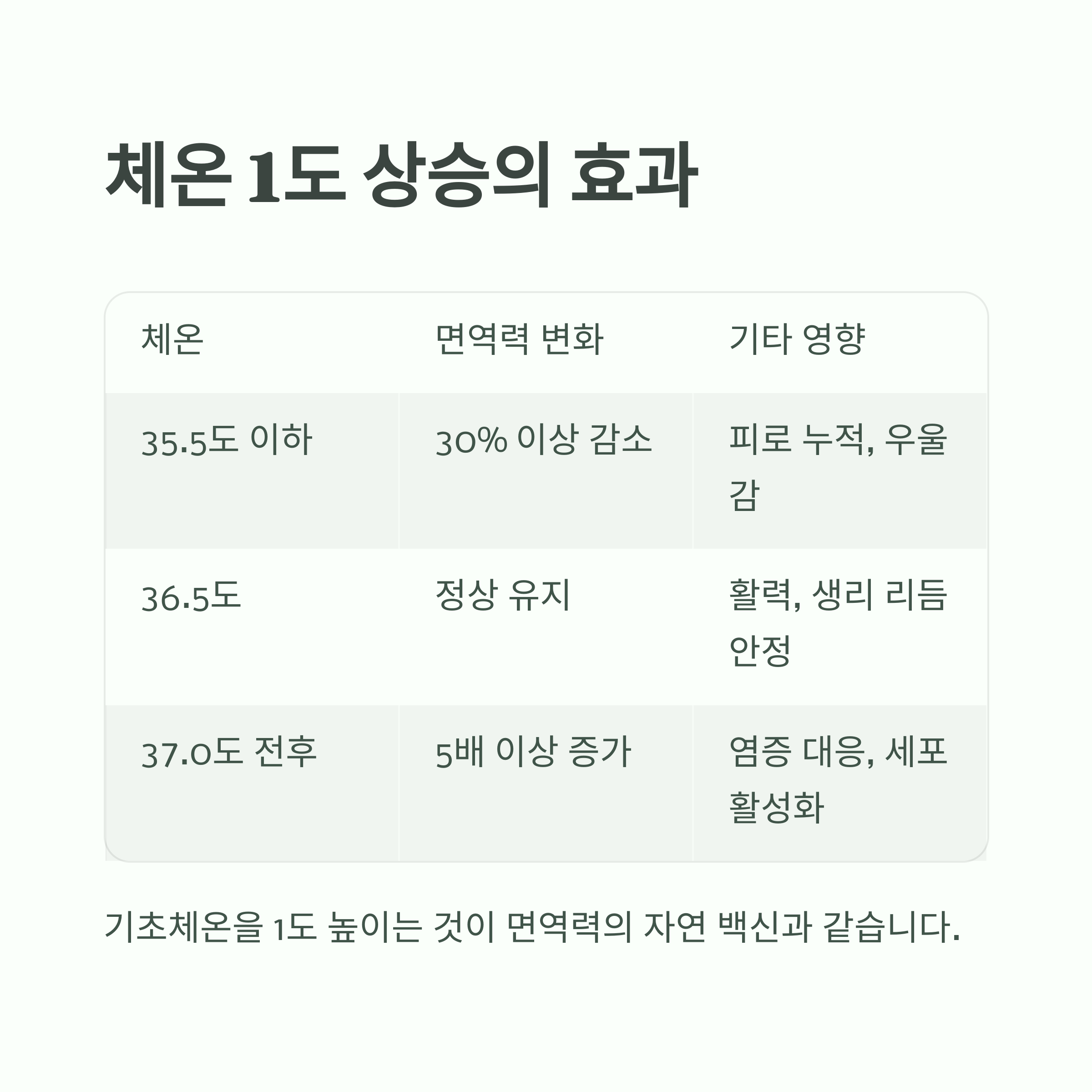 핵심: 기초체온을 1도 높이는 것이 면역력의 자연 백신과 같다는 점입니다.
