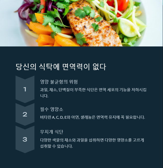 면역력은 하루아침에 강화되는 것이 아니라, 올바른 생활 습관을 지속적으로 실천해야 합니다.