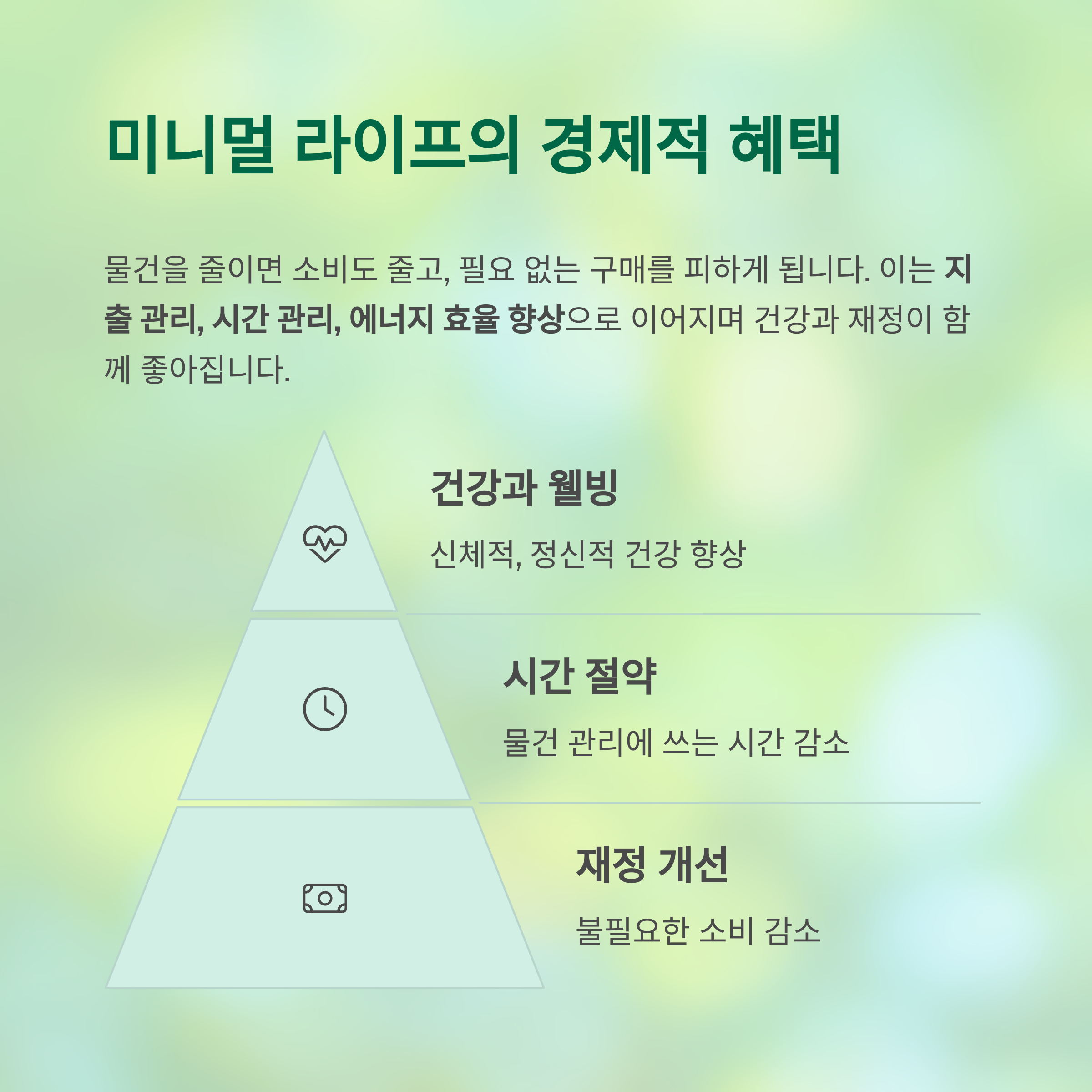 이는 곧 지출 관리, 시간 관리, 에너지 효율 향상으로 이어지며