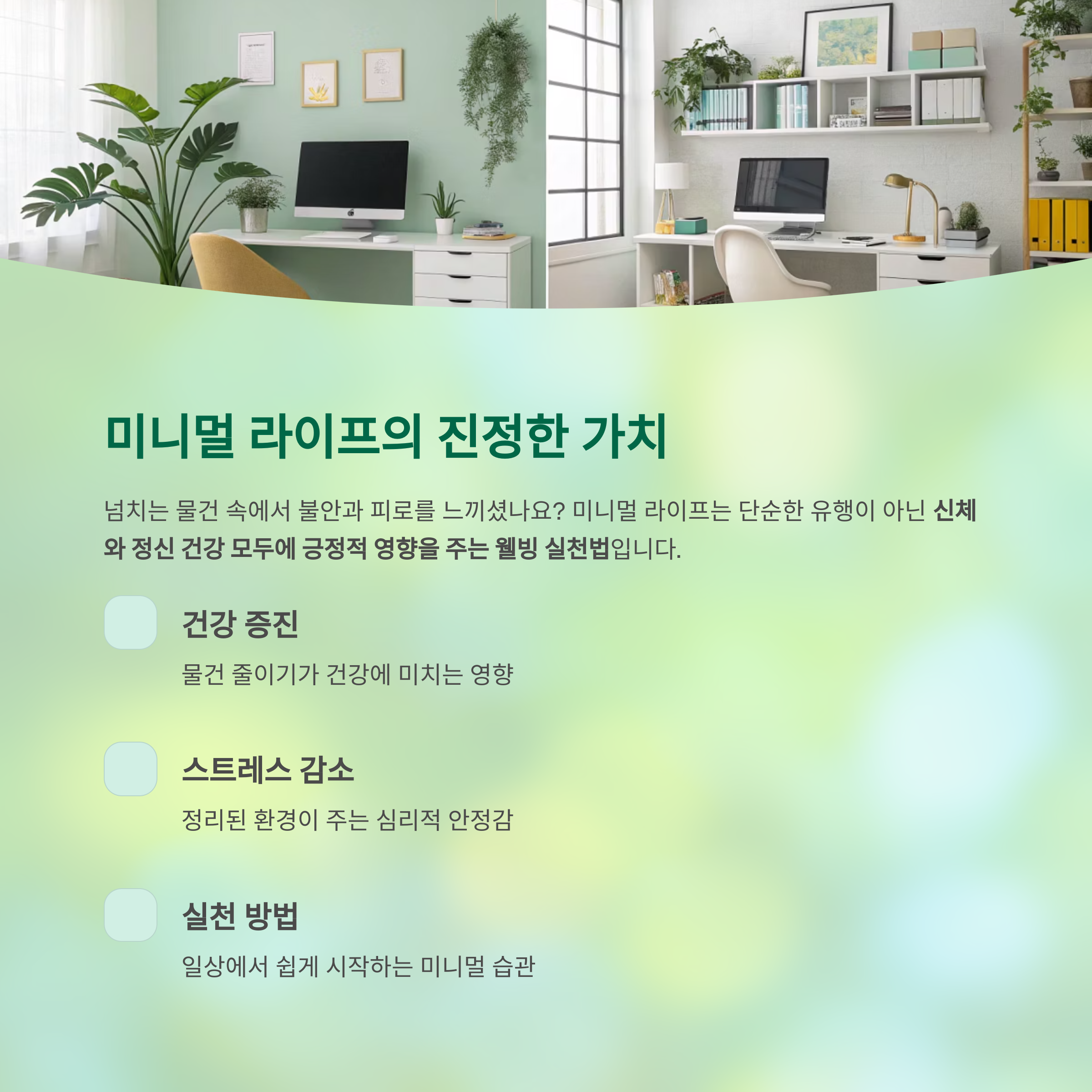 정리와 비움은 단순한 유행이 아니라 신체와 정신 건강 모두에 긍정적 영향을 주는 웰빙 실천법입니다.