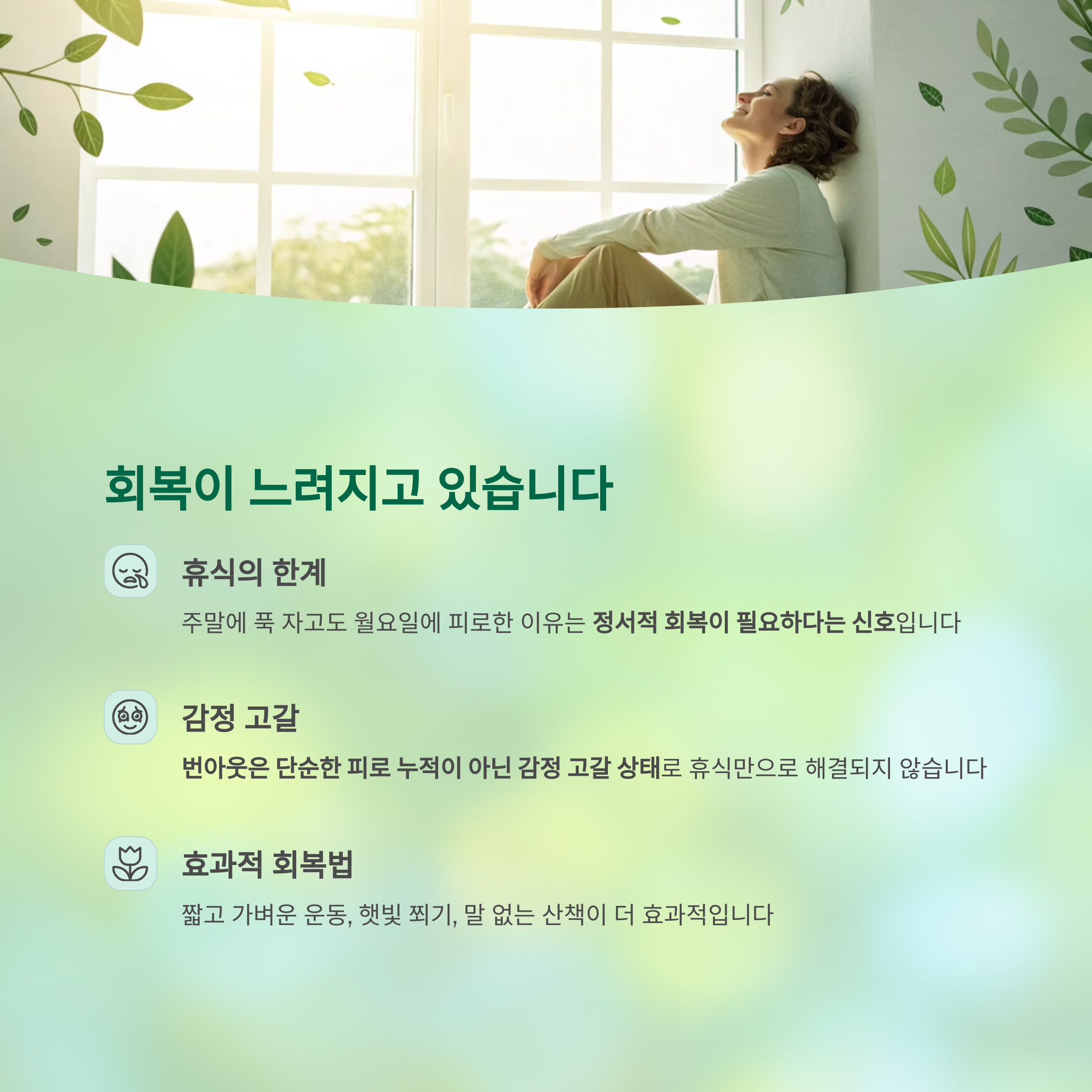 휴식만으로 해결되지 않습니다.