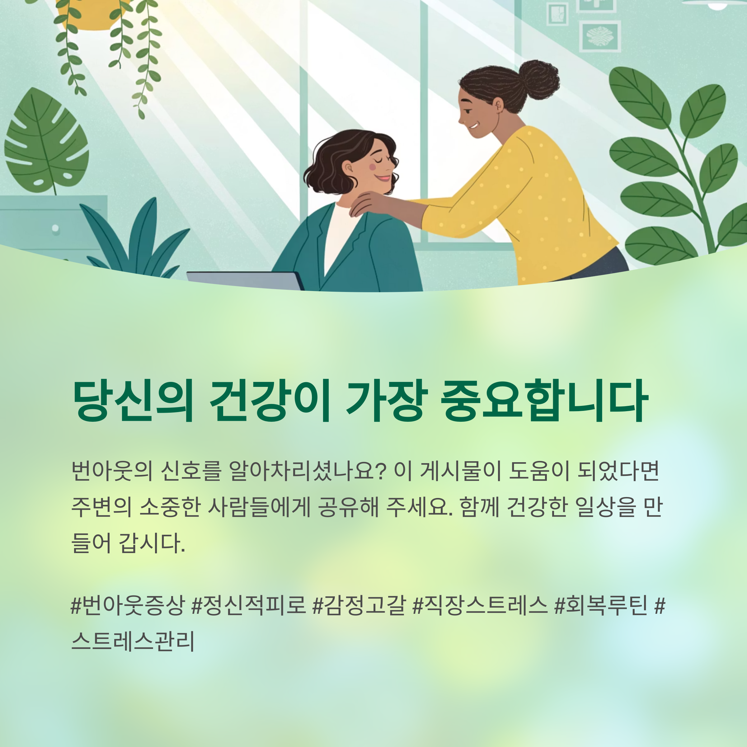 오늘 하루, 당신의 몸과 마음은 괜찮은지 꼭 한 번 물어보세요.