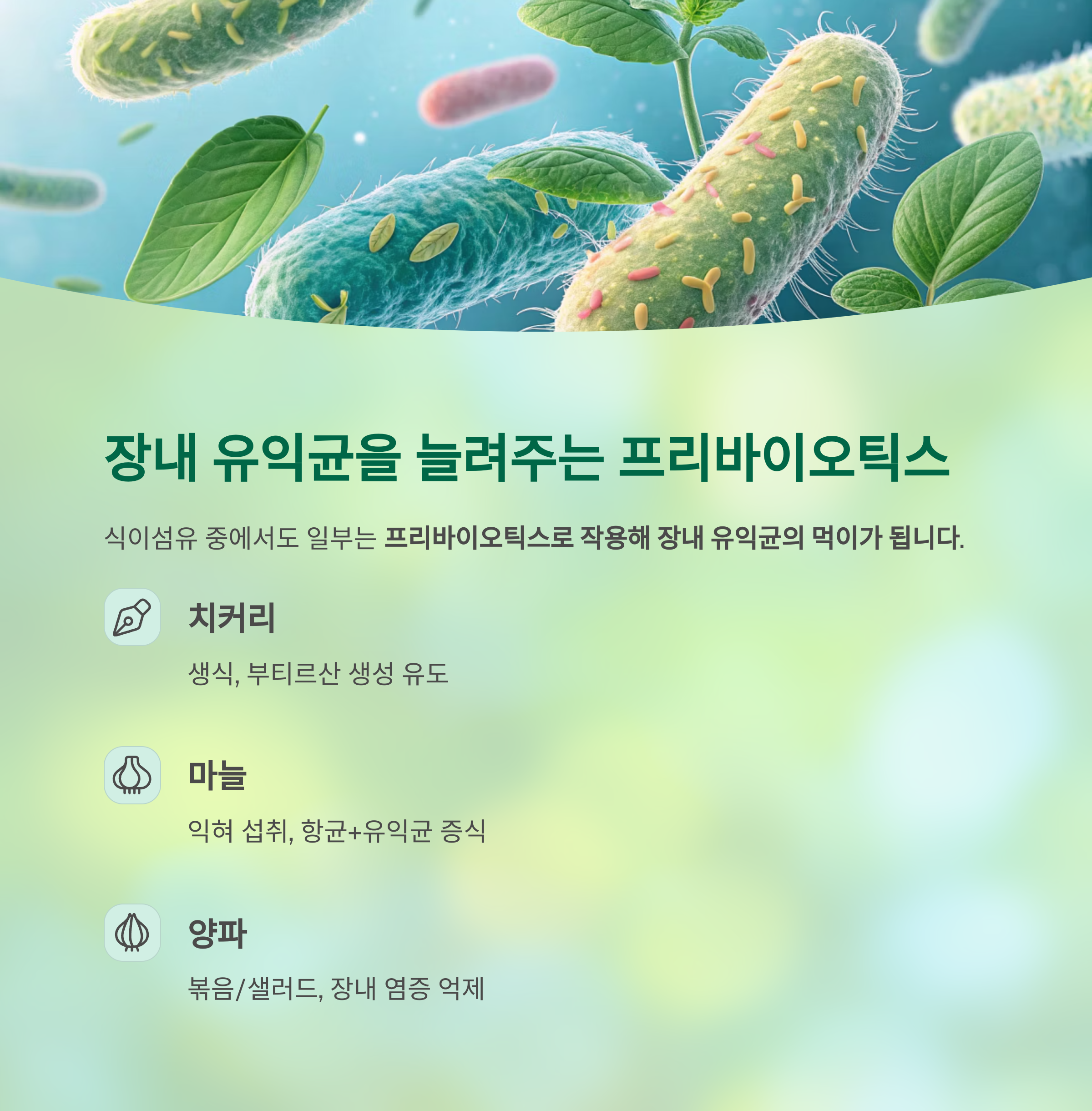 | 마늘 | 익혀 섭취 | 항균+유익균 증식 |