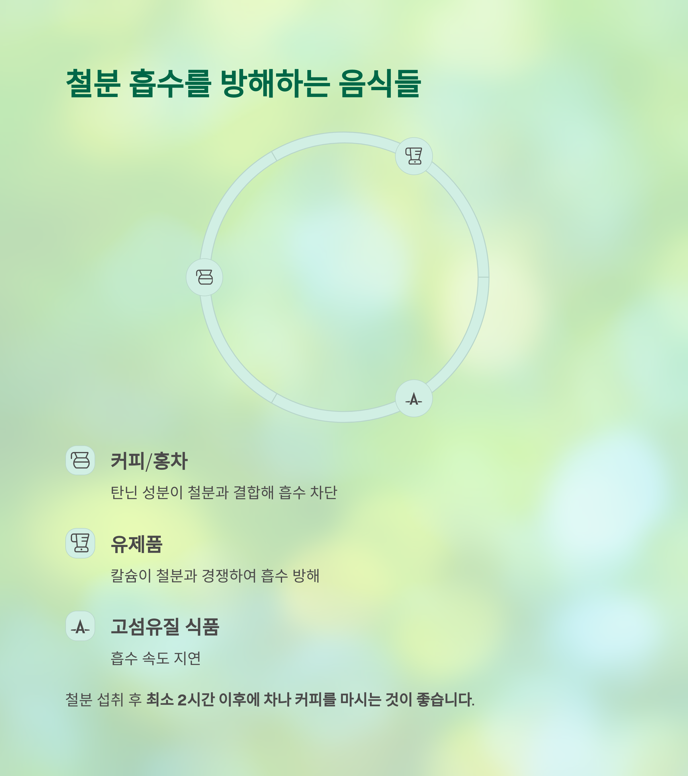 커피, 차, 유제품은 철분 흡수를 방해한다
