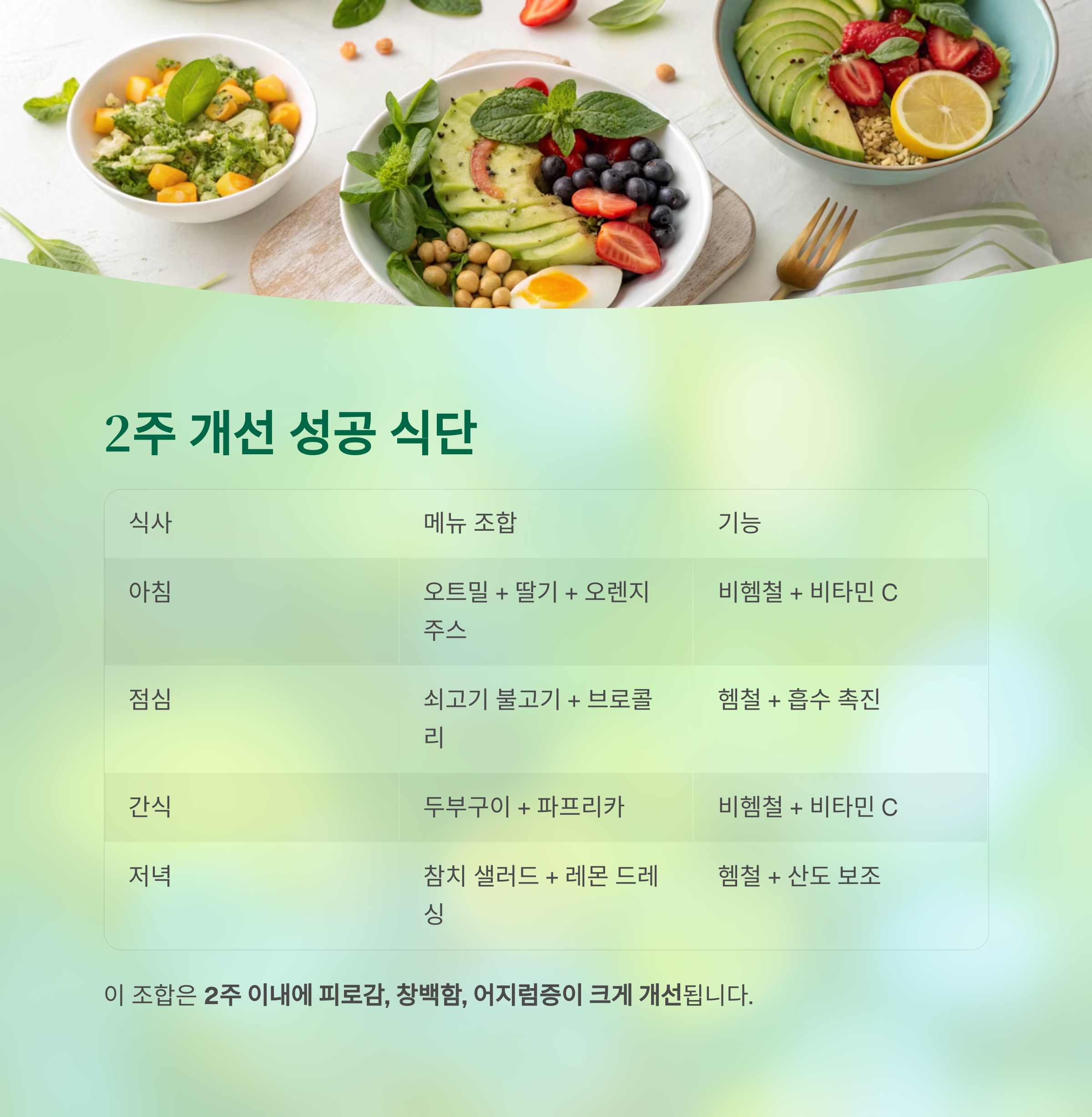 이번 글에서는 2주 만에 빈혈 개선을 도운 실질적인 식단 조합을 소개합니다