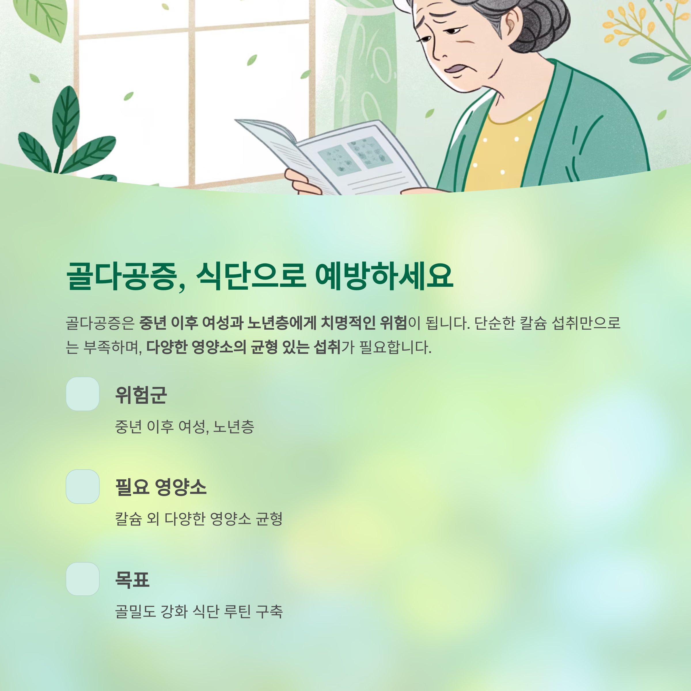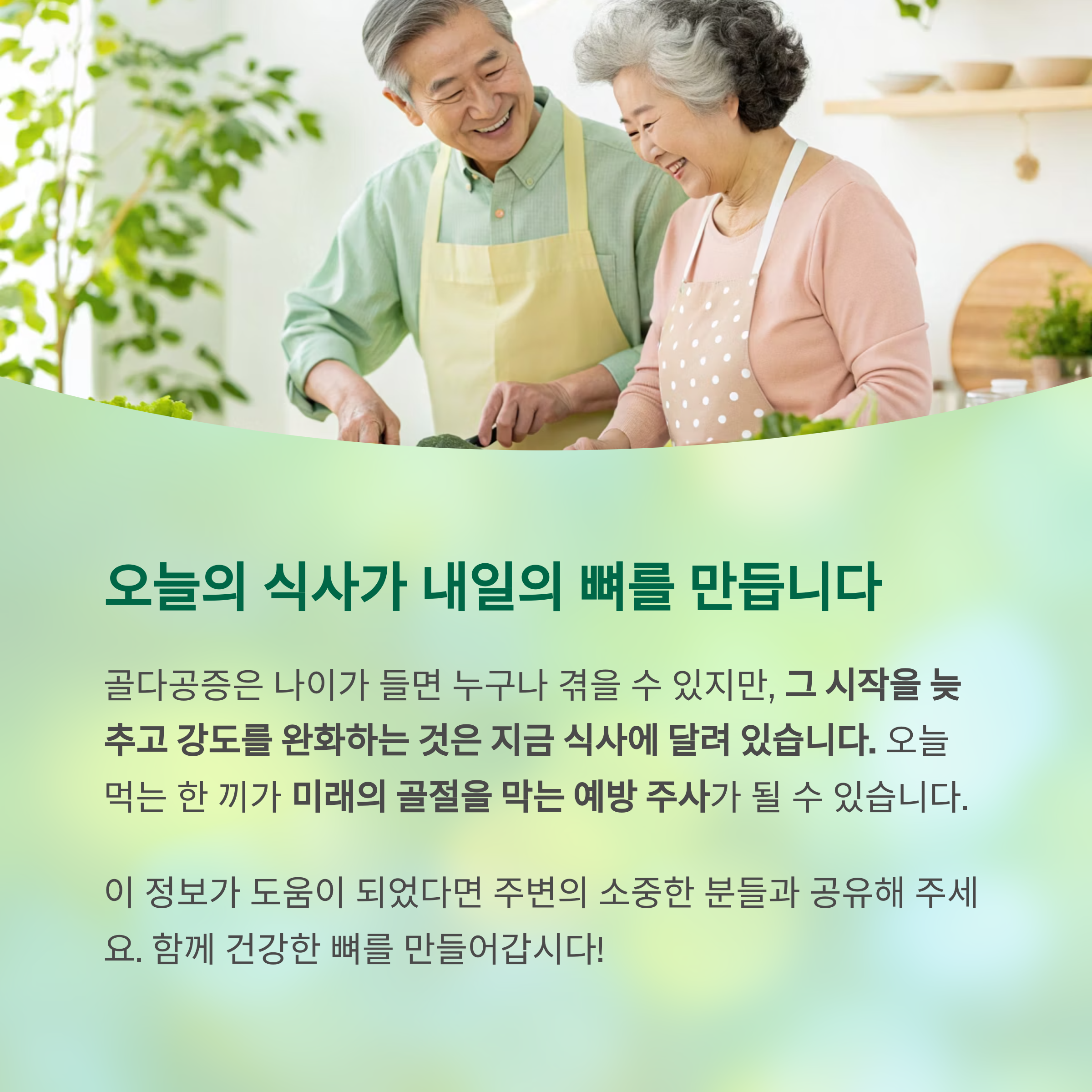 오늘 먹는 한 끼가 미래의 골절을 막는 예방 주사가 될 수 있습니다.