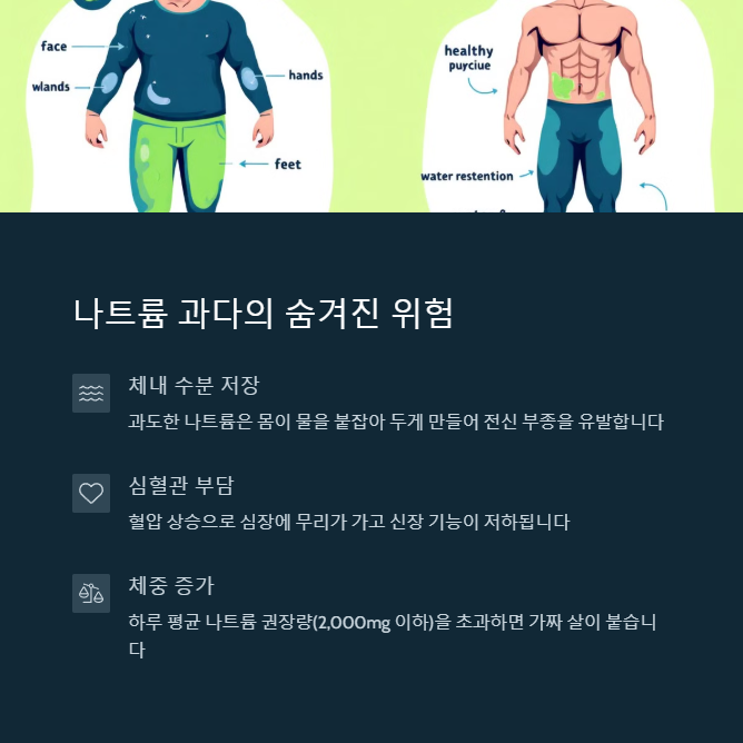오히려 몸이 가벼워지고 집중력도 올라간다는 분들이 많아요. 나트륨 줄이면 피로감도 줄어든답니다.
