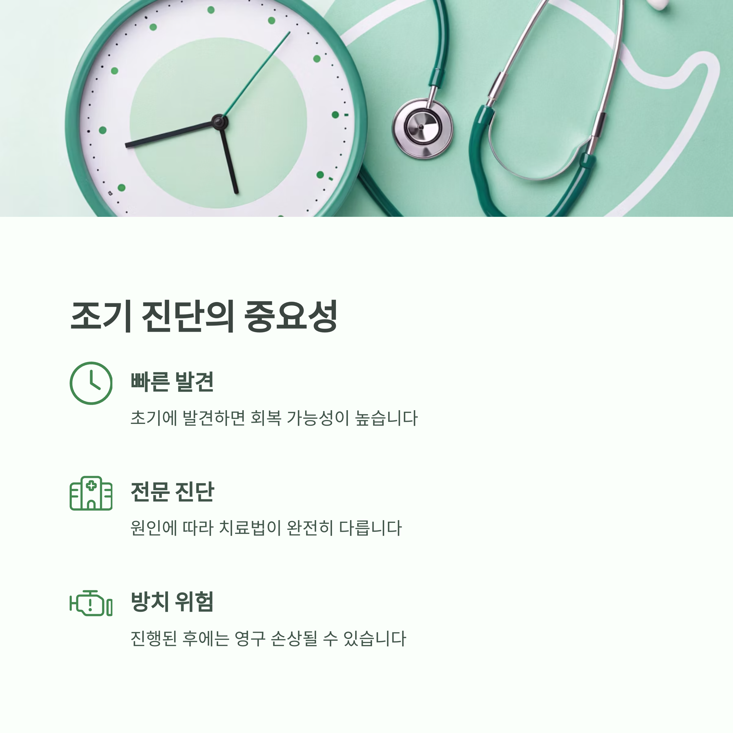 신경 손상은 초기에 발견하면 회복 가능성이 높지만, 진행된 후에는 영구 손상될 수 있습니다.