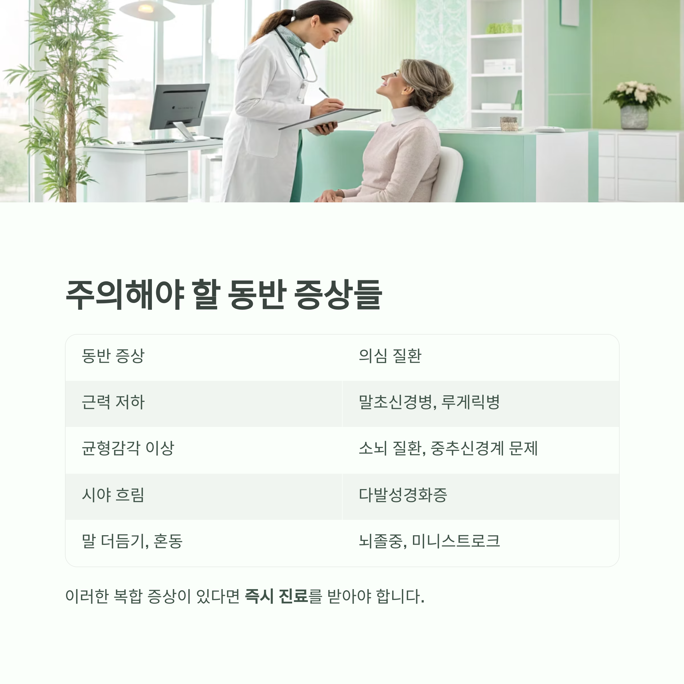 감각 이상은 단독 증상으로 나타날 수도 있지만, 아래와 같은 증상과 동반되면 더욱 주의가 필요합니다.