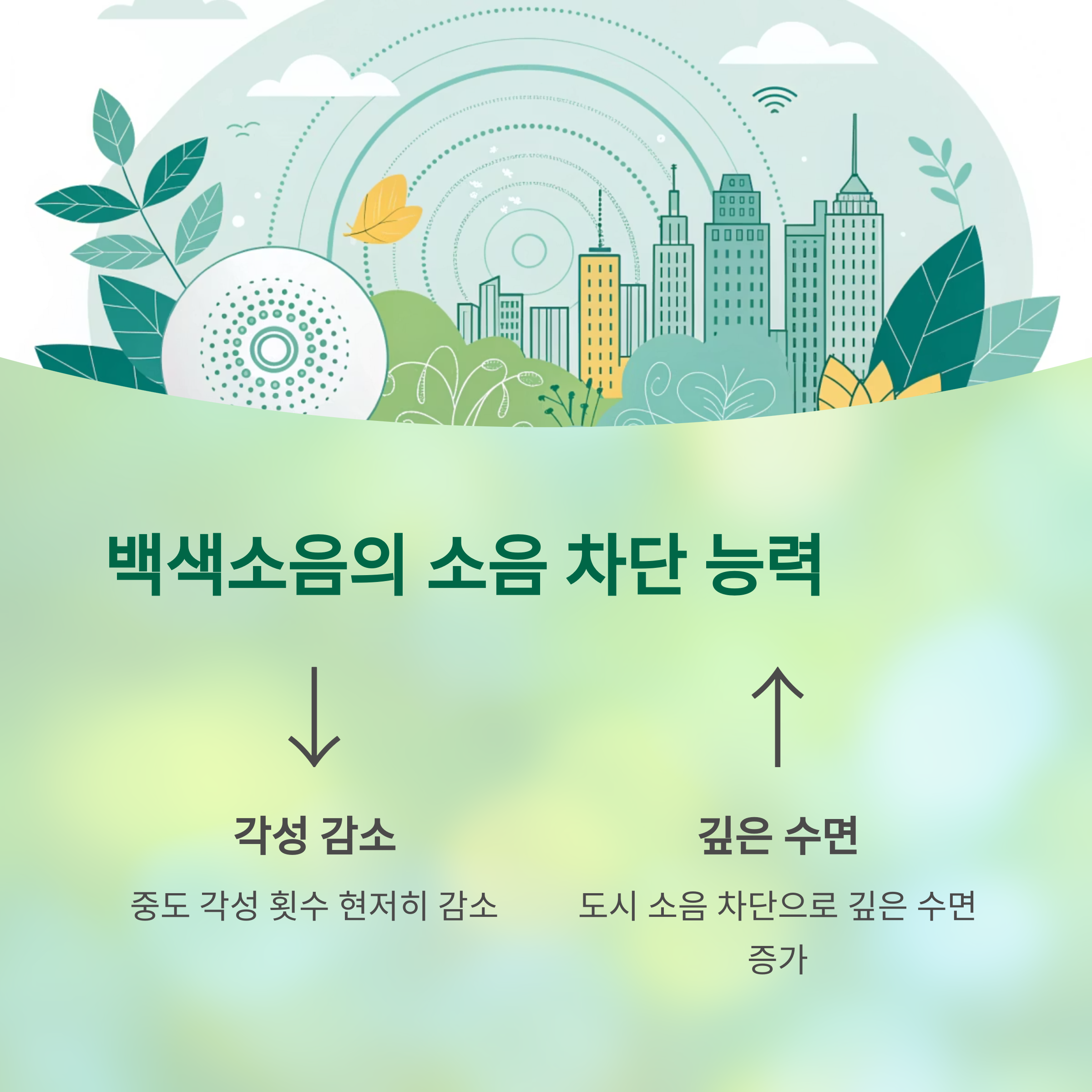백색소음 그룹은 주변 소음으로 인한 중도 각성 횟수가 현저히 줄었습니다 도시 생활에서 나타나는 소음 스트레스를 효과적으로 차단하여 깊은 수면의 시간을 늘려주었습니다 단, 스트레스 호르몬 감소 효과는 숙면 음악보다 낮았습니다